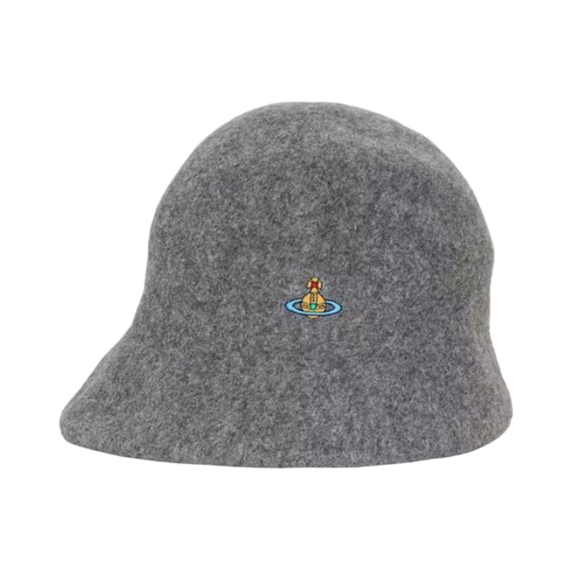 비비안 웨스트우드 크로쉐 로고 자수 울 버킷햇 그레이