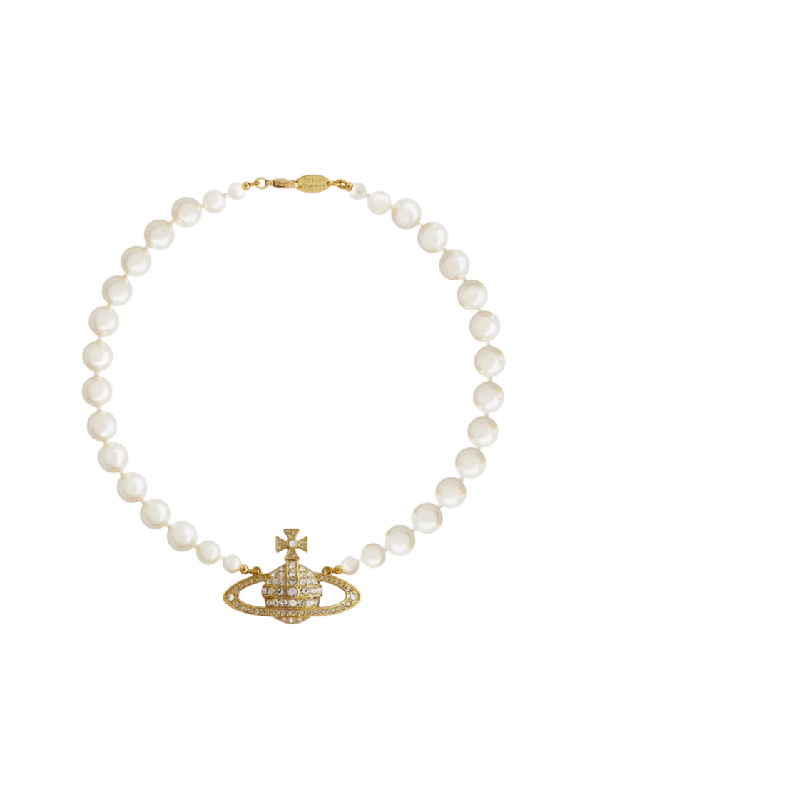 비비안 웨스트우드 원 로우 펄 바스 릴리프 초커 골드