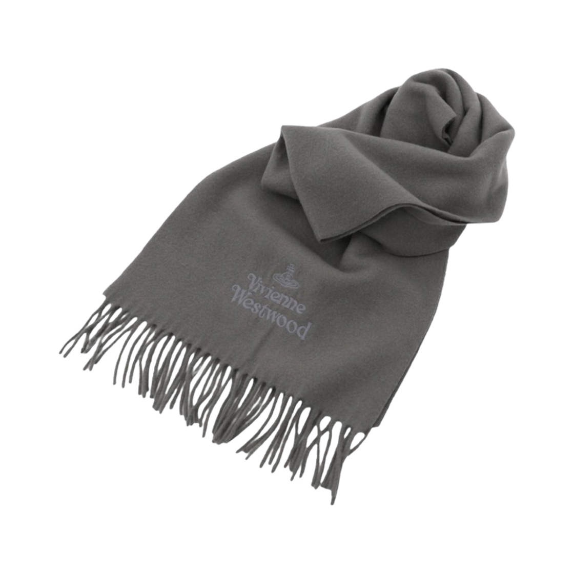 비비안 웨스트우드 자수 로고 울 머플러 다크 그레이