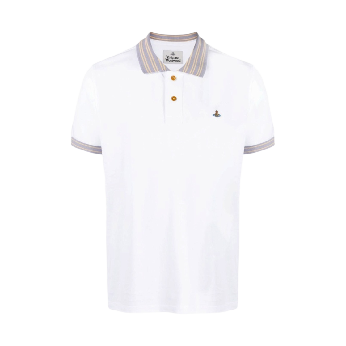비비안 웨스트우드 오브 로고 폴로 스트라이프 칼라 화이트
