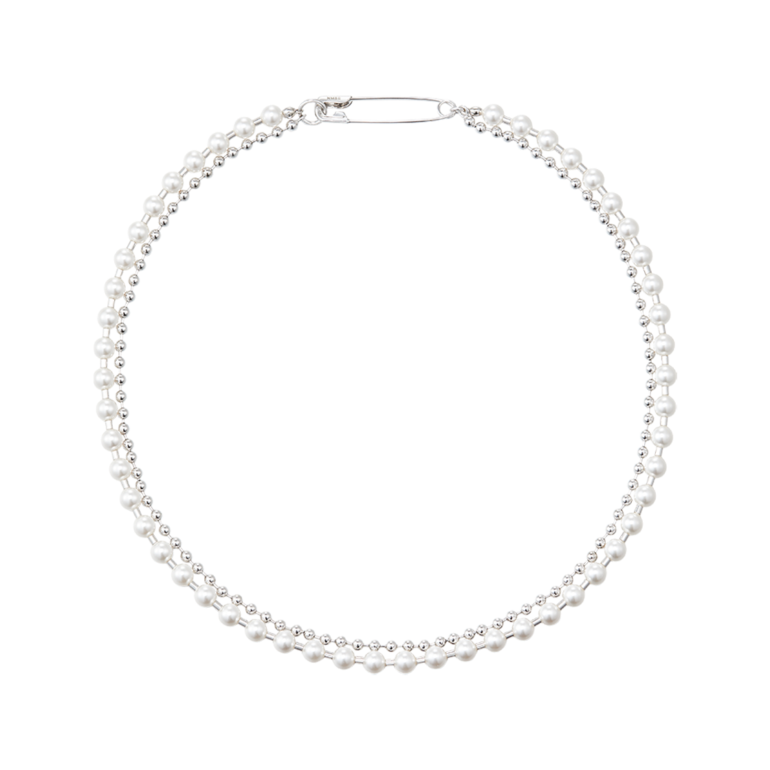 넘버링 #9709 볼 체인 위드 비즈 네크리스 화이트
