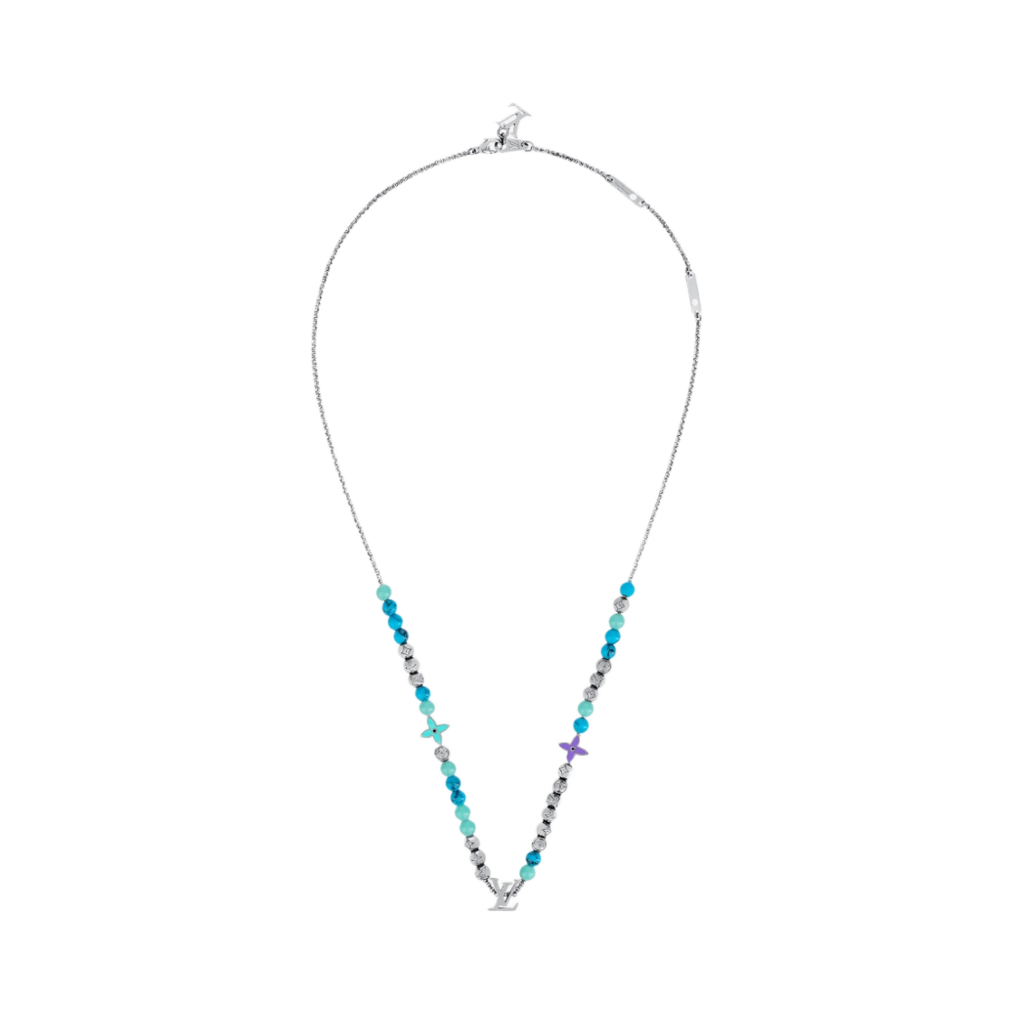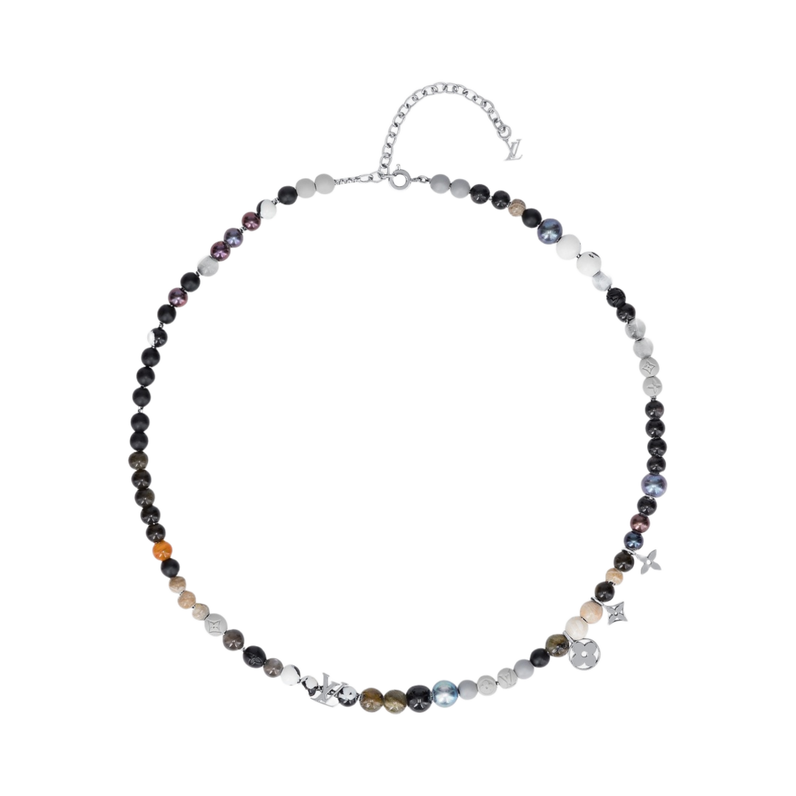 루이비통 나노 비즈 네클리스 크리스탈 메탈 실버