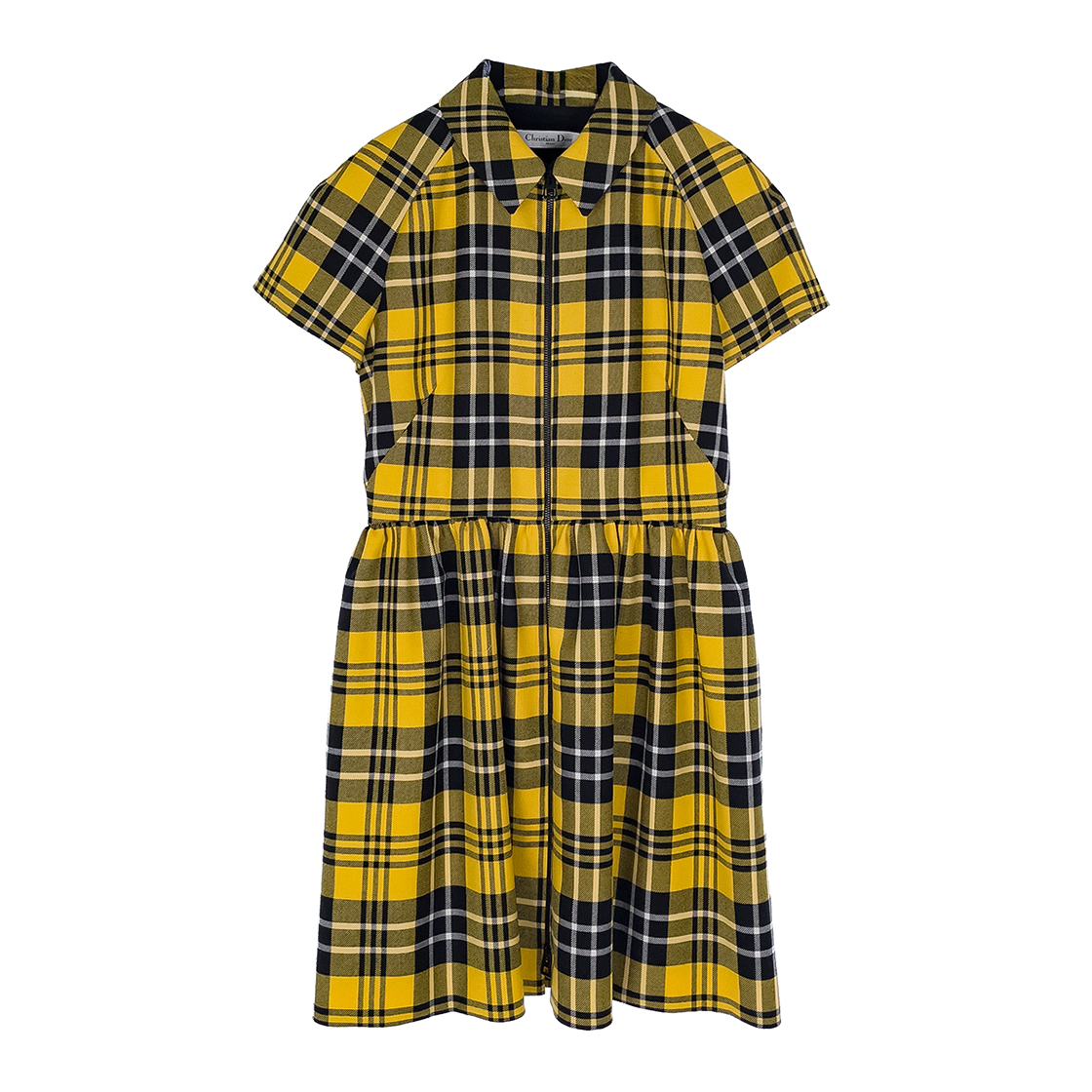 디올 미니 플리츠 숏 슬리브 원피스 블랙/옐로우 38