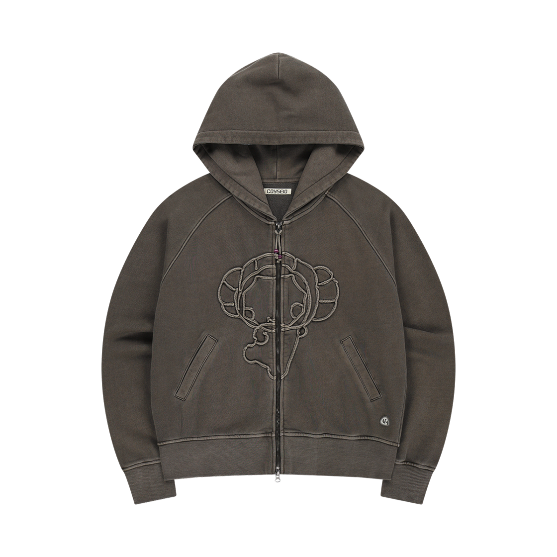 펀치 드렁크 파티즈 크레스트 로고 빈티지 워시드 집업 후드 차콜