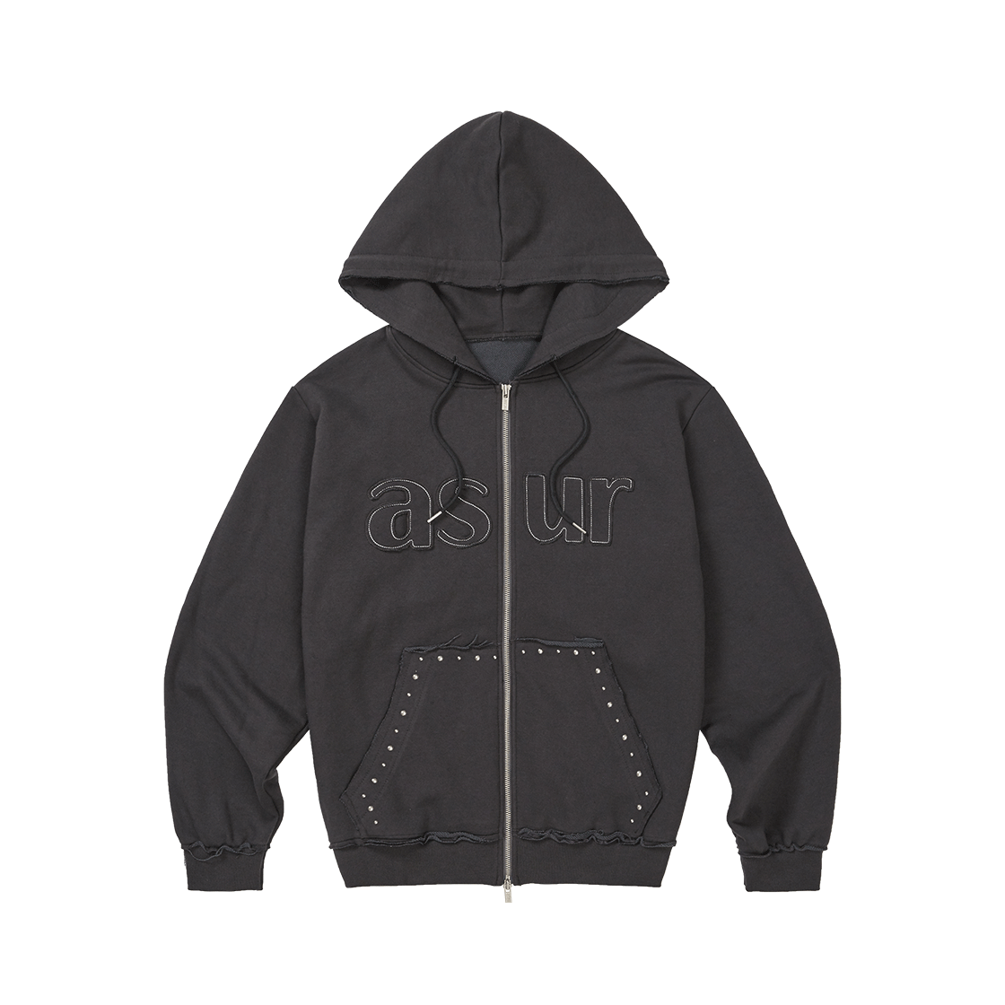 애즈유아 컷 오프 빈티지 후드 집업 차콜