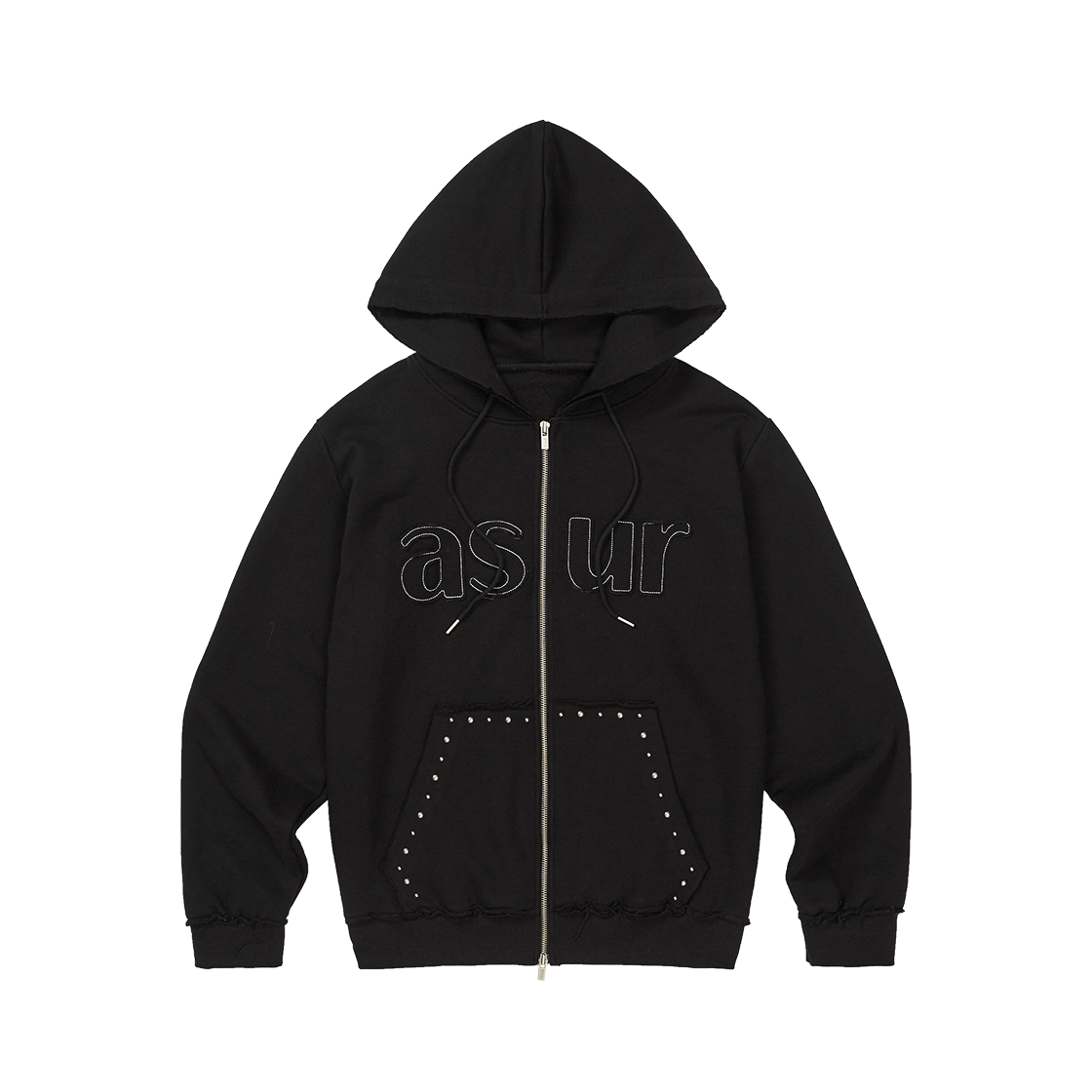 애즈유아 컷 오프 빈티지 후드 집업 블랙