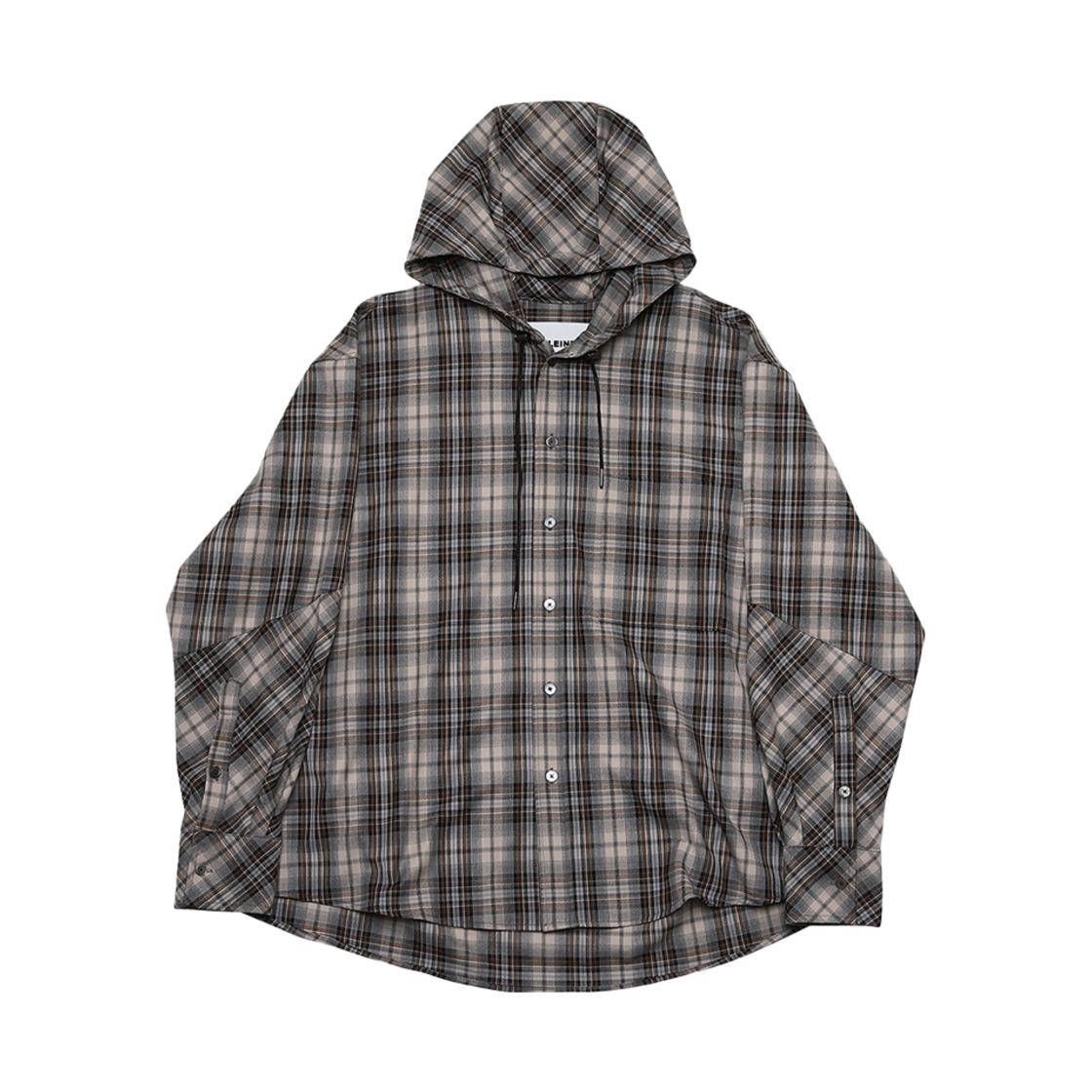 알렌느 백 사이드 2 플리츠 디테일 체크 후드 셔츠 다크 그레이