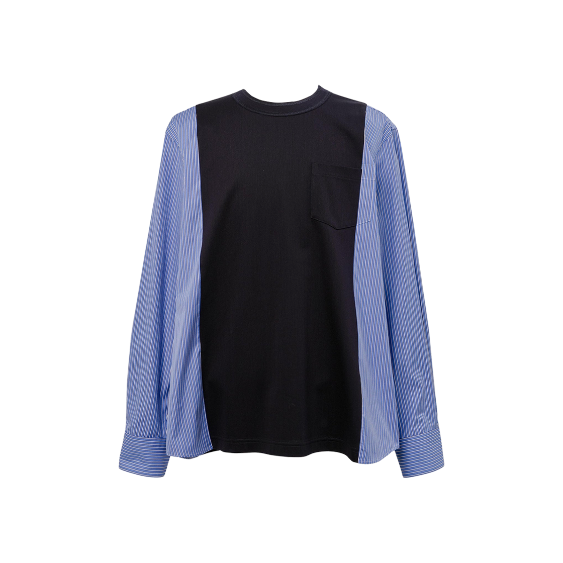 사카이 포플린 코튼 저지 롱슬리브 티셔츠 네이비 블루 스트라이프