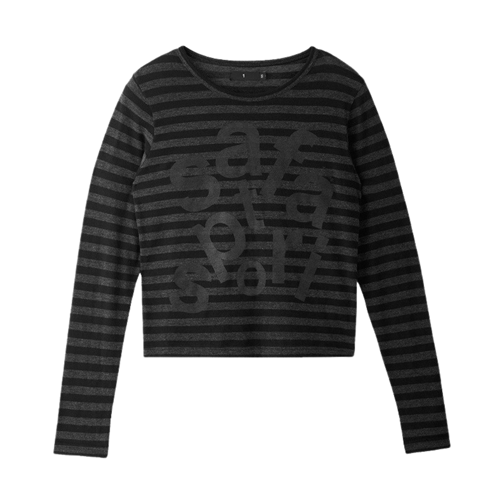 사파리스팟 우먼 1/2 티켓팅 스트라이프 보더 티 블랙