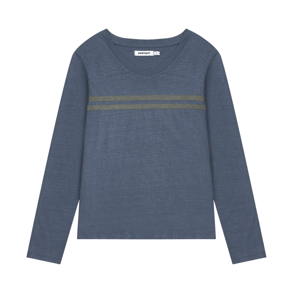 사파리스팟 1/2 컨트리 도트 브이넥 롱 슬리브 인디고