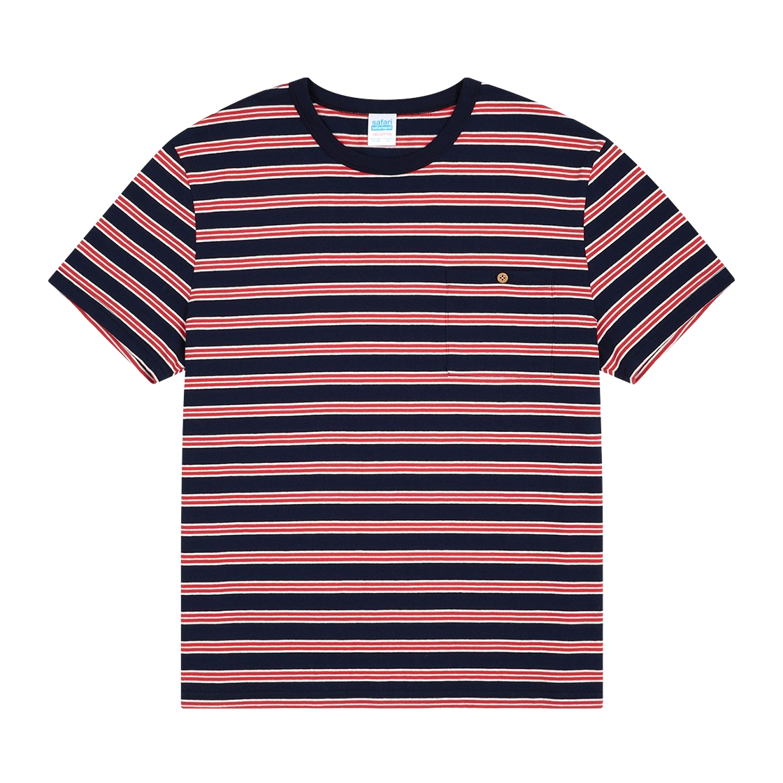 사파리스팟 레귤러 스트라이프 우드 포켓 티 - 네이비