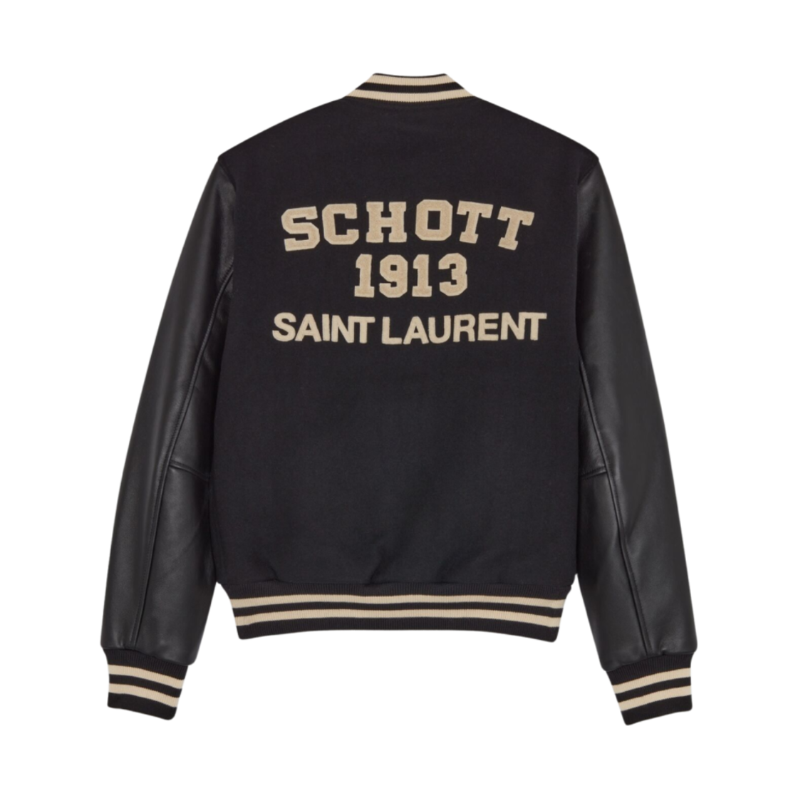 생로랑 숏 바시티 자켓 울 앤 램스킨 블랙