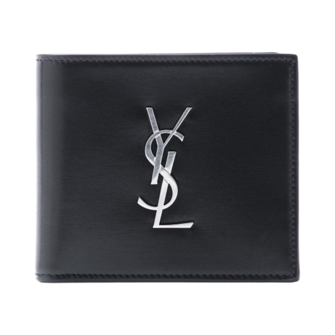 생로랑 모노그램 지퍼 트라이폴드 월렛 블랙