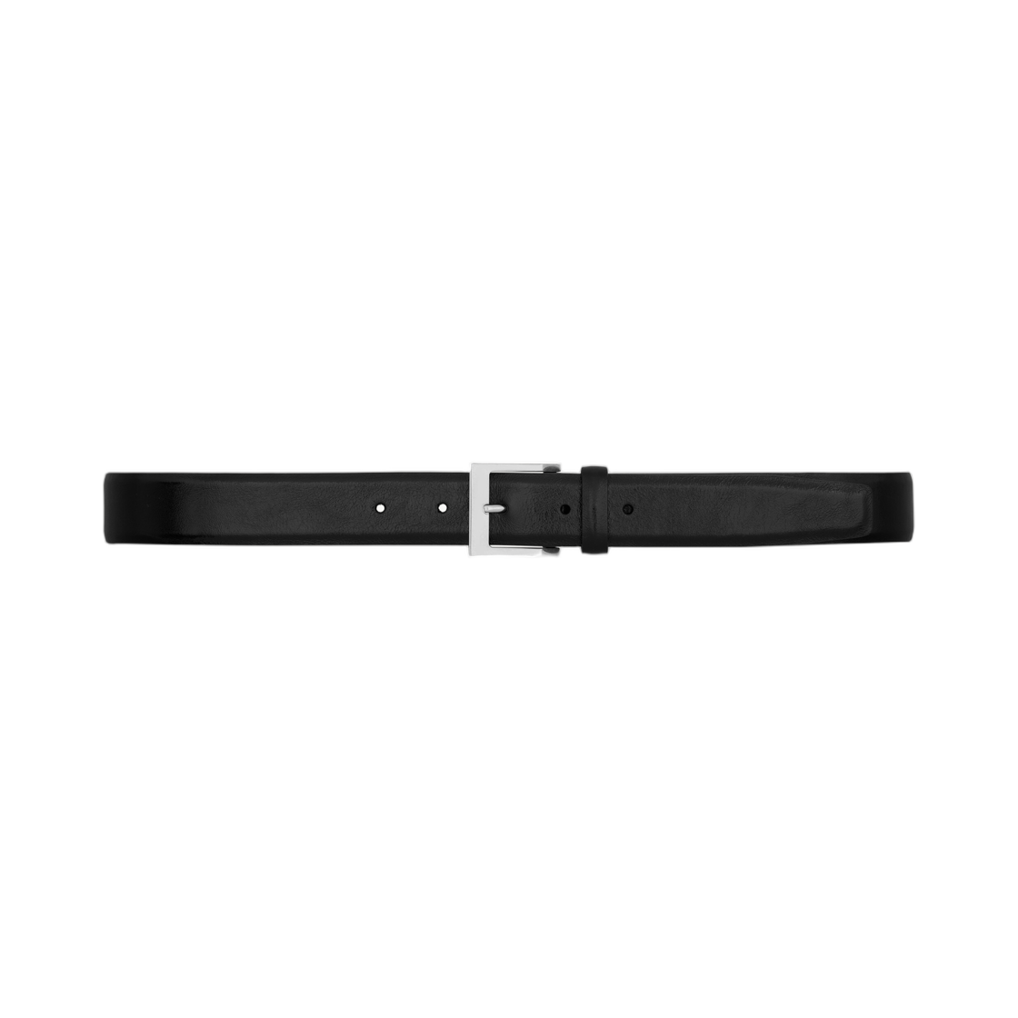 생로랑 카산드라 그레인 레더 스퀘어 버클 씬 벨트 블랙