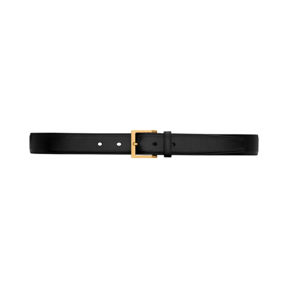 생로랑 카산드라 그레인 레더 스퀘어 버클 씬 벨트 블랙