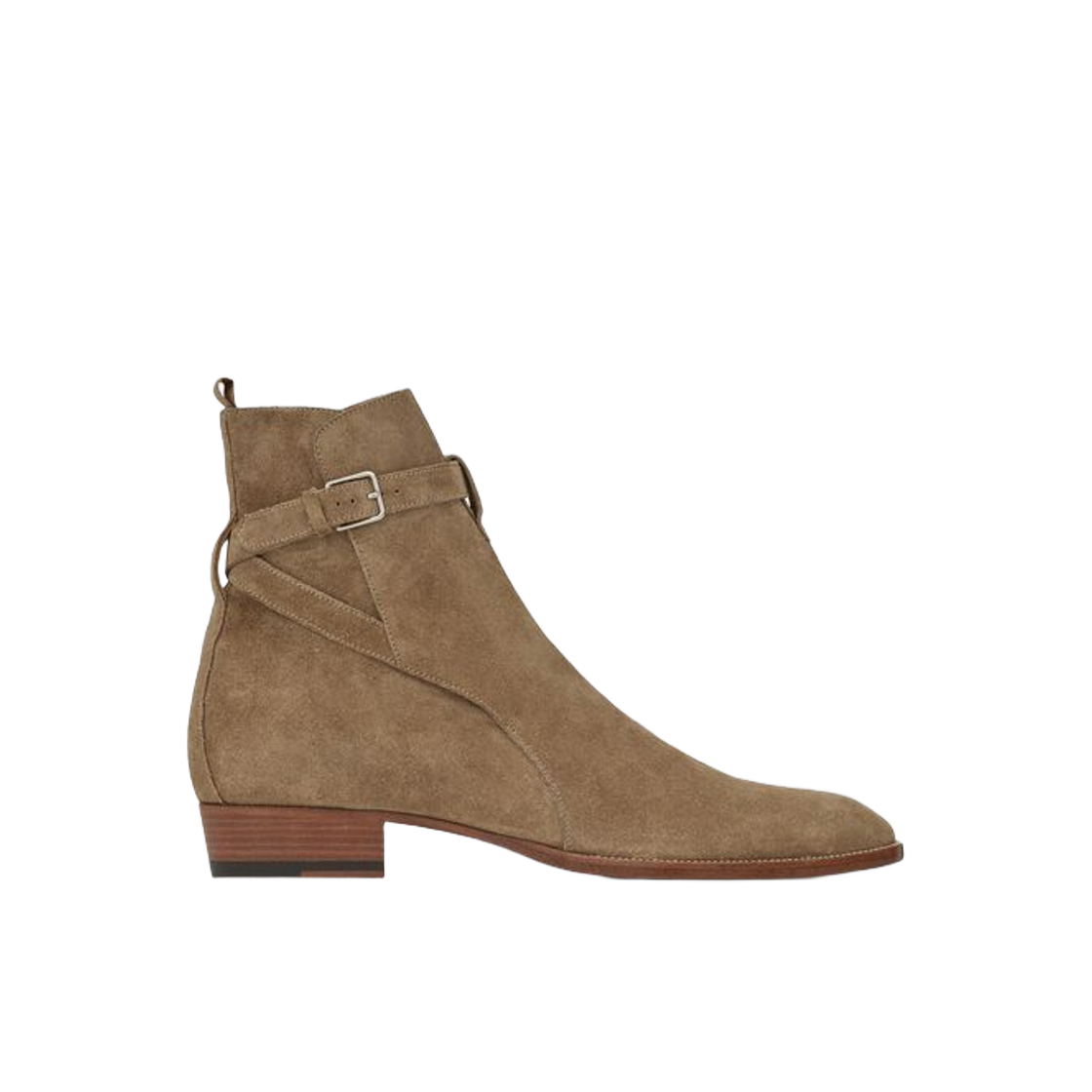 생로랑 와이어트 조드퍼 부츠 스웨이드 토바코