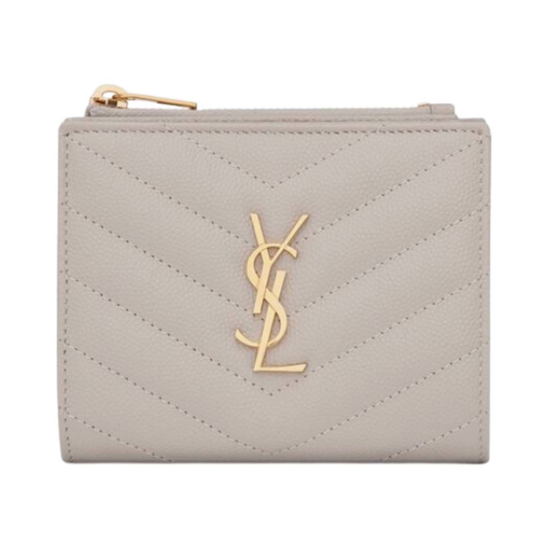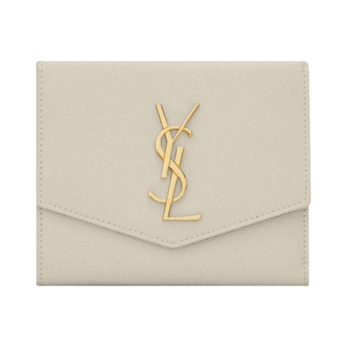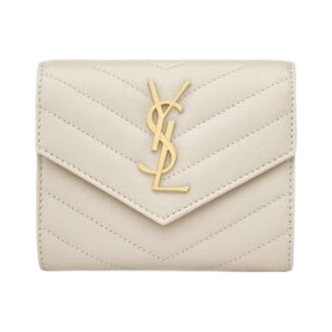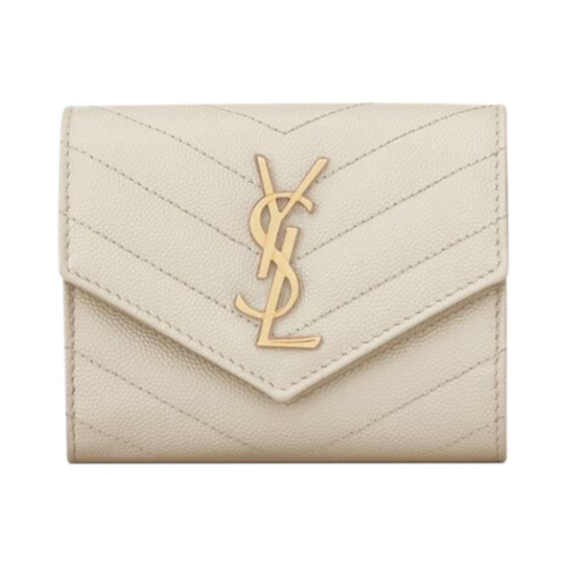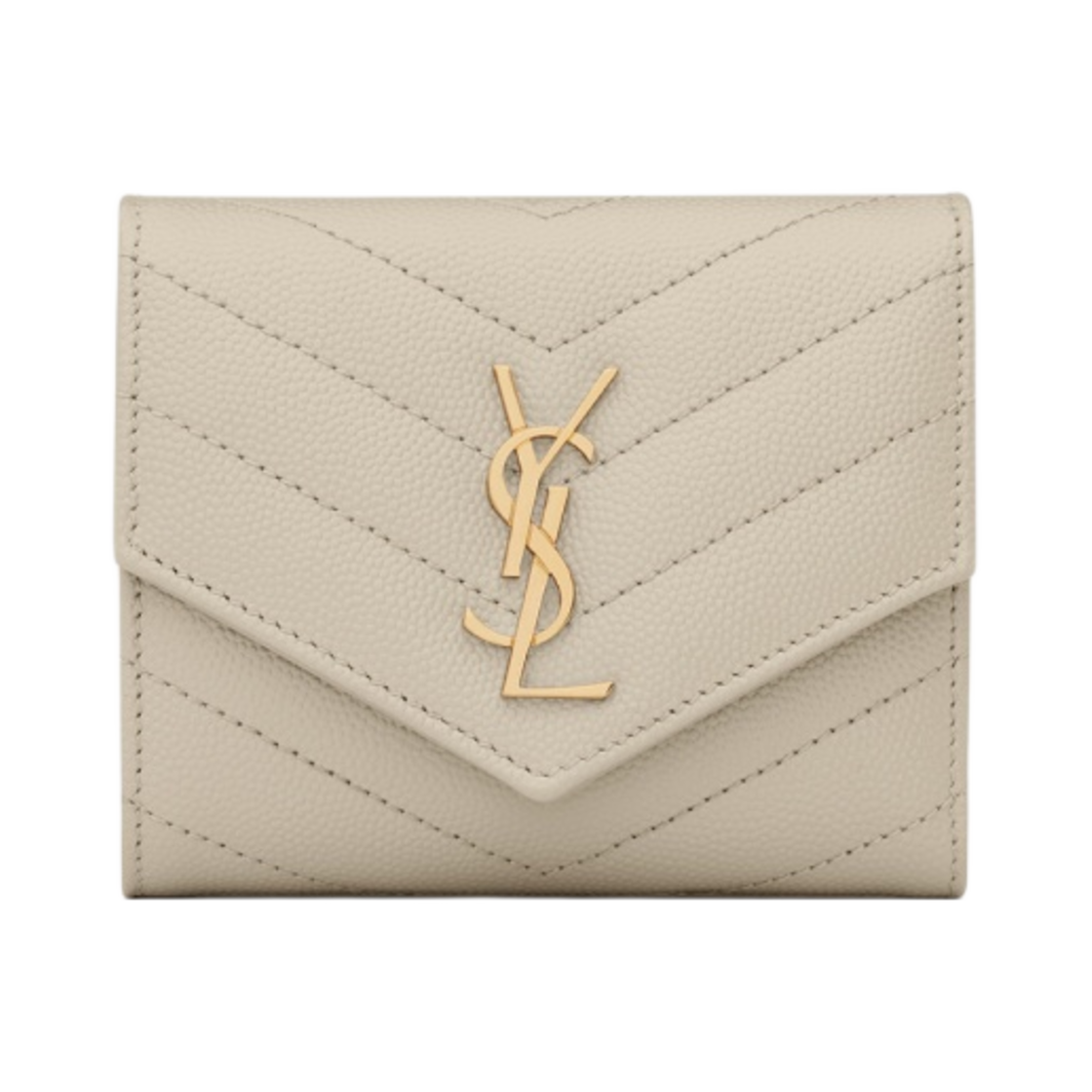 생로랑 카산드라 마틀라세 컴팩트 트라이 폴드 월렛 그레인 드 뿌드르 레더 블랑 빈티지