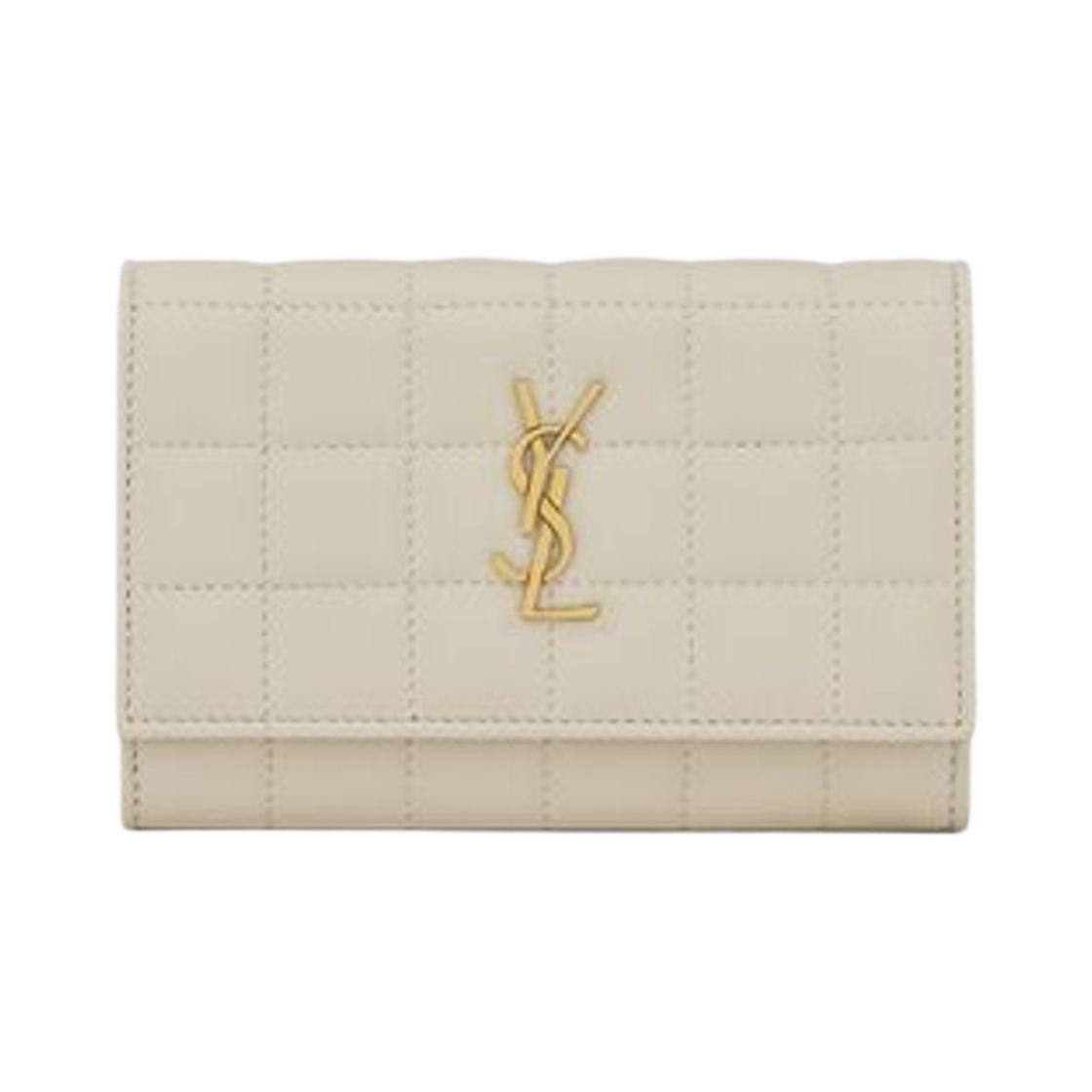 생로랑 카산드라 마틀라세 컴팩트 트라이 폴드 월렛 퀼티드 램스킨 블랑 빈티지
