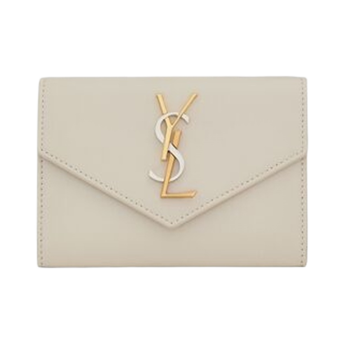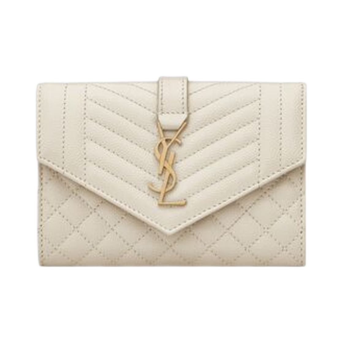 생로랑 엔벨로프 스몰 엔벨로프 월렛 믹스 마틀라세 그레인 드 뿌드르 엠보스 레더 블랑 빈티지