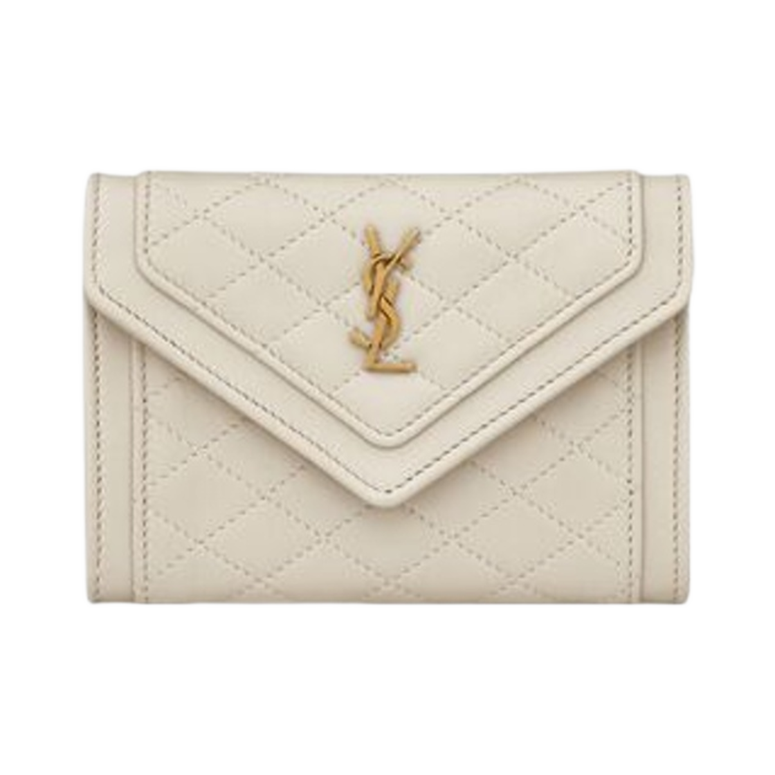 생로랑 가비 스몰 엔벨로프 월렛 퀼티드 램스킨 빈티지 화이트