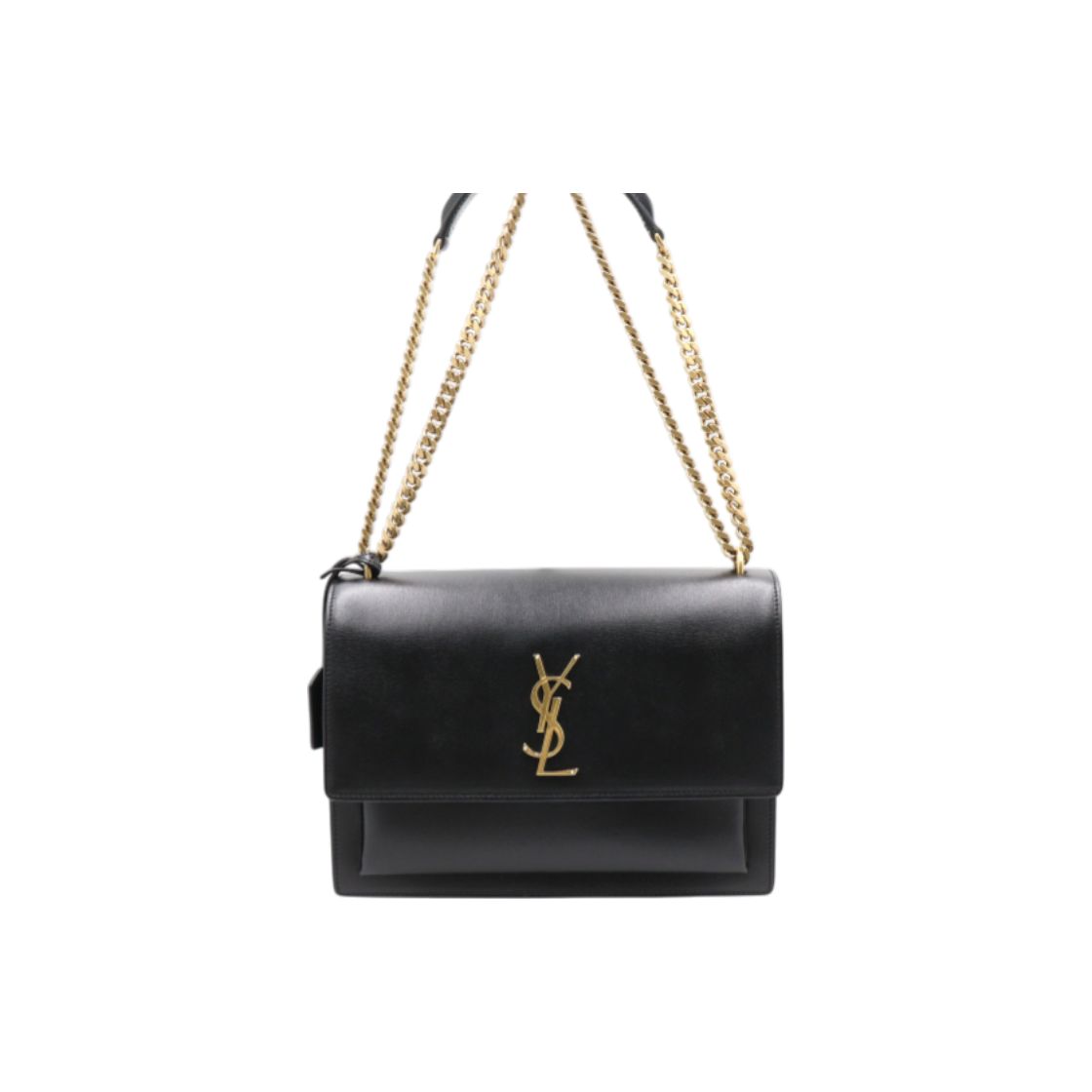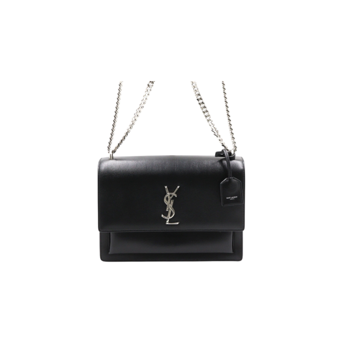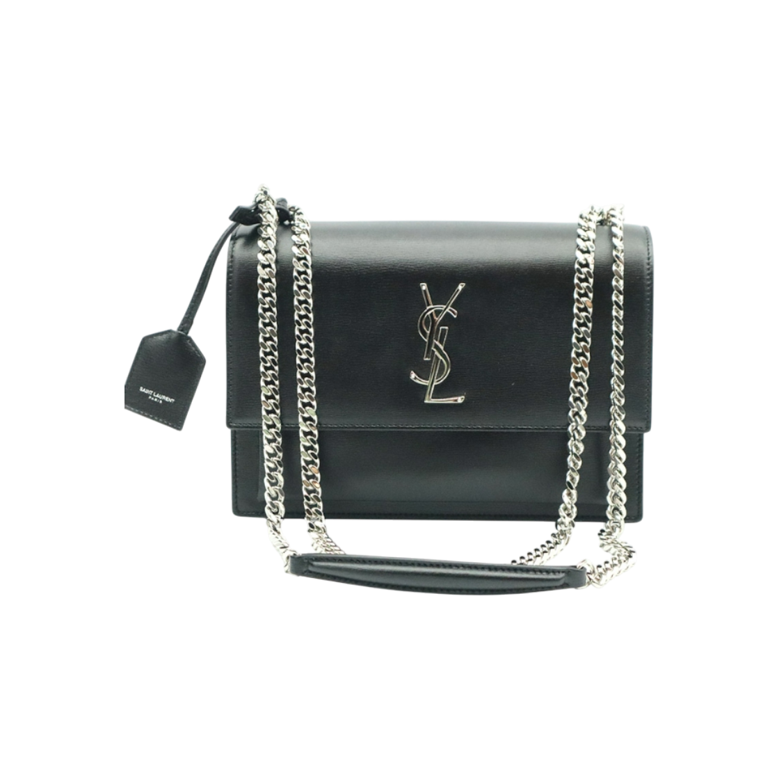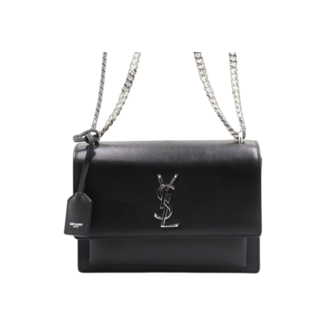 생로랑 442906 블랙 카프스킨 은장 체인 선셋 미듐 숄더백