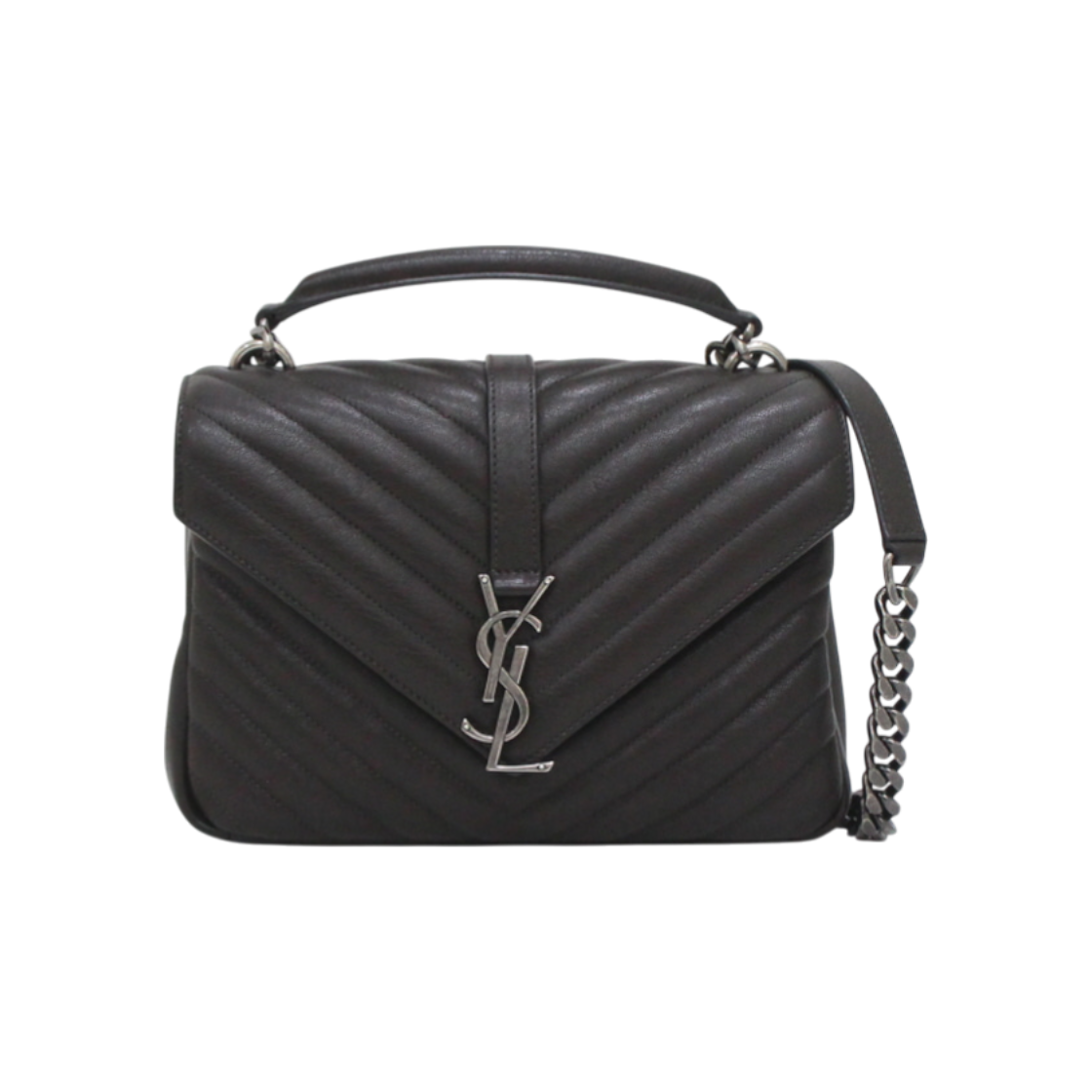 생로랑 428056 다크브라운 레더 모노그램 컬리지 미디엄 토트백 숄더백 aa52531