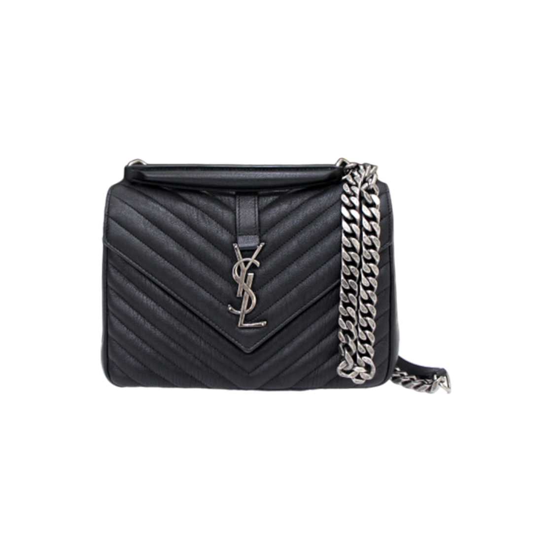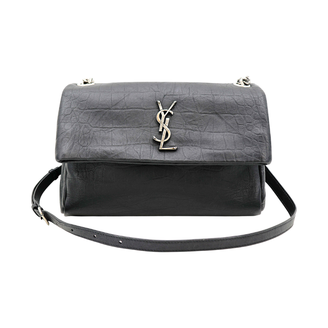 생로랑 크링클 빈티지 레더 블랙 모노그램 니키 미디움백 실버 체인 스트랩 블랙