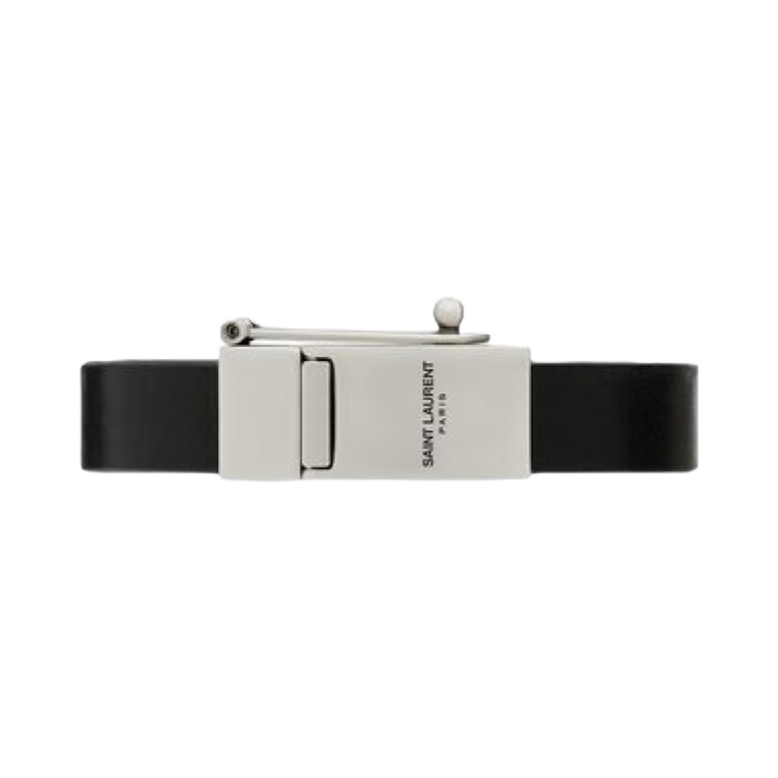 생로랑 생로랑 빈티지 브레이슬릿 레더 앤 메탈 블랙 옥시다이즈드 실버