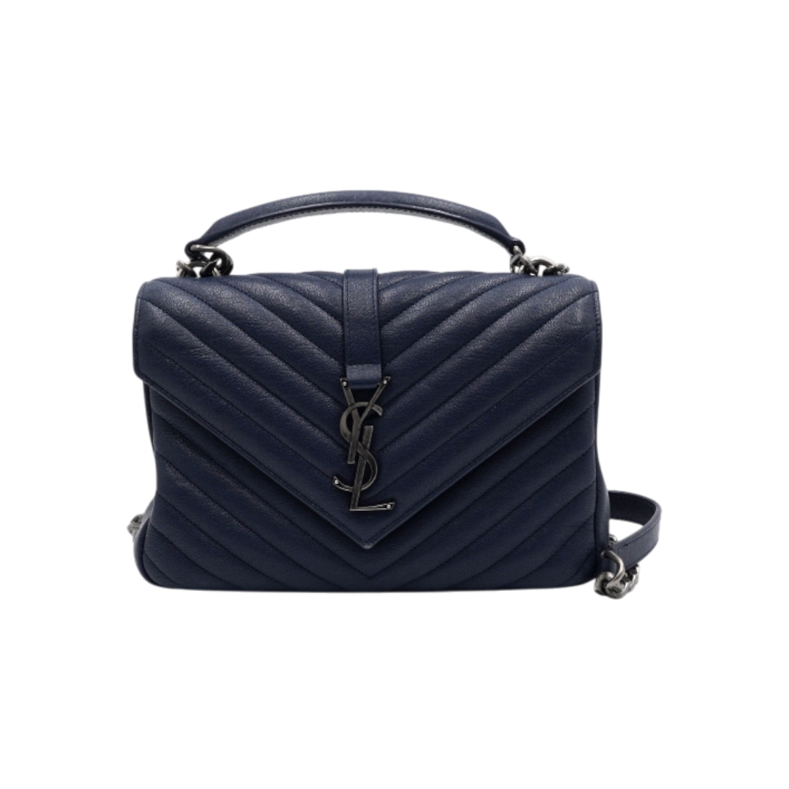 생로랑 600279 컬리지 네이비 레더 미디엄 마틀라세 숄더백 겸 크로스백 aa57225