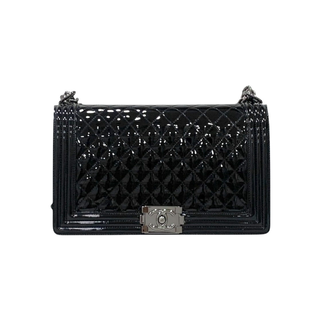 샤넬 보이백 라지 플랩백 CC 은장 페이던트 레더