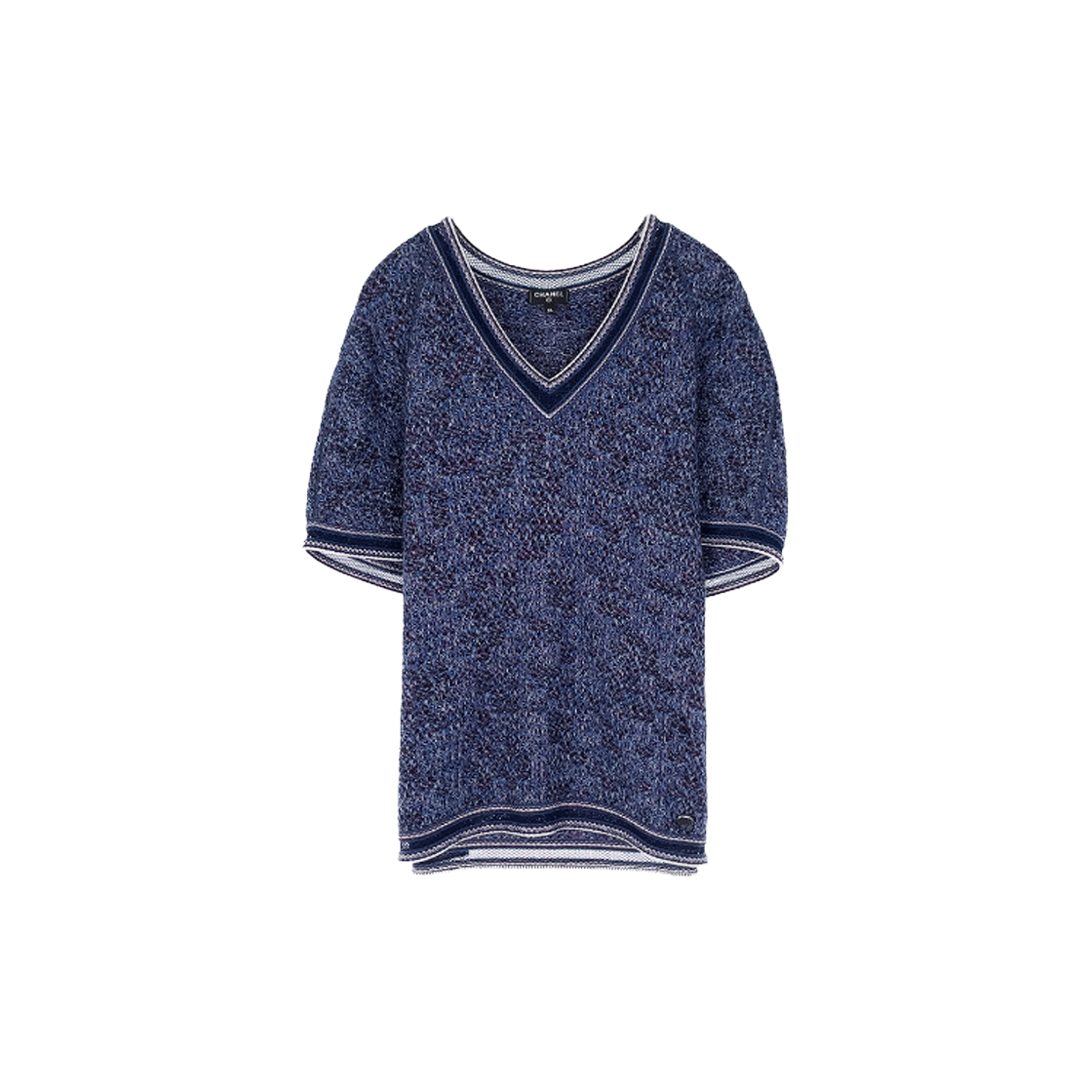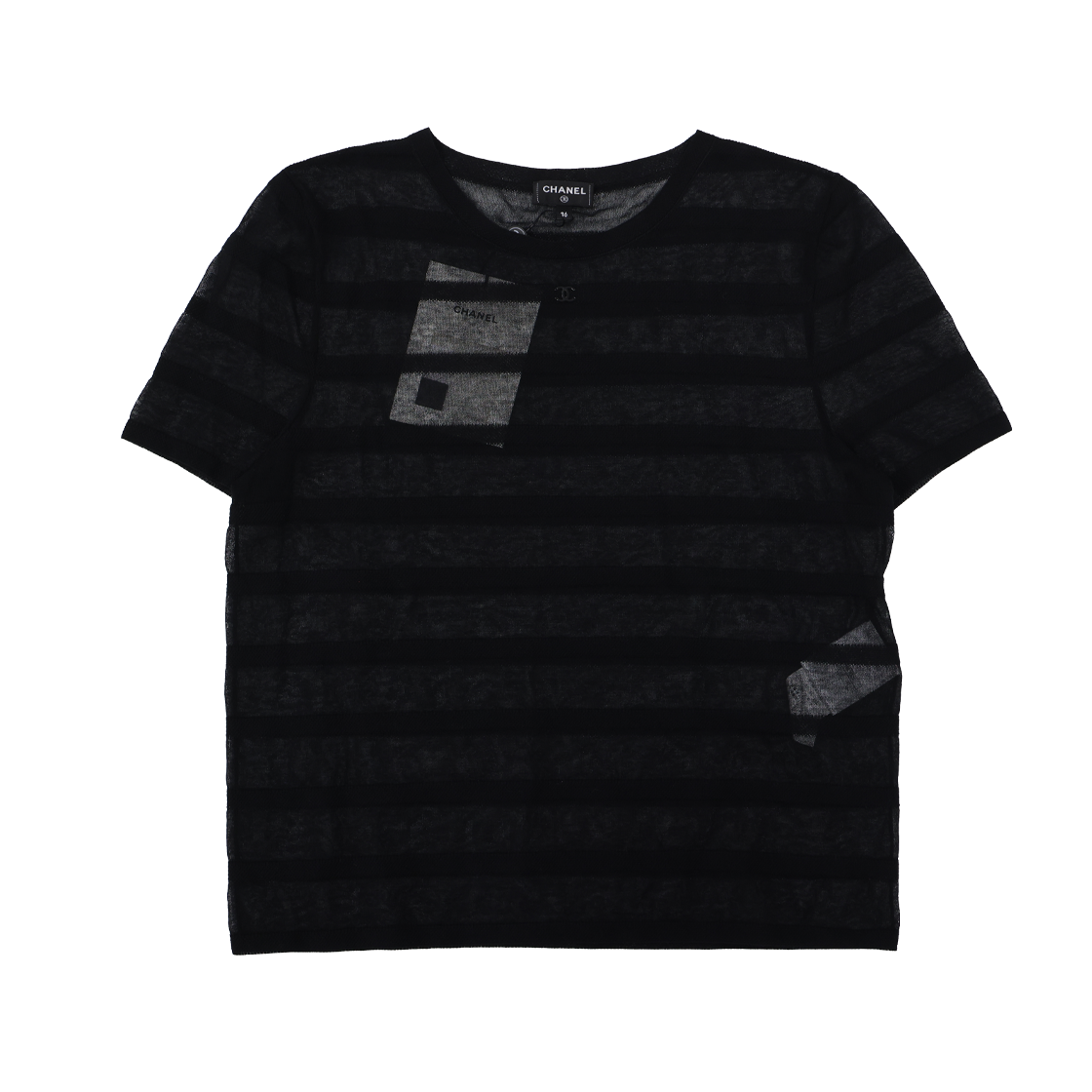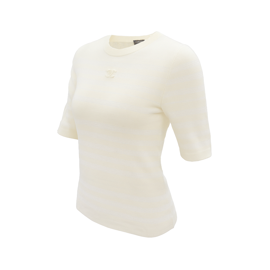 샤넬 P75749 CC로고 스트라이프 반팔 캐시미어
