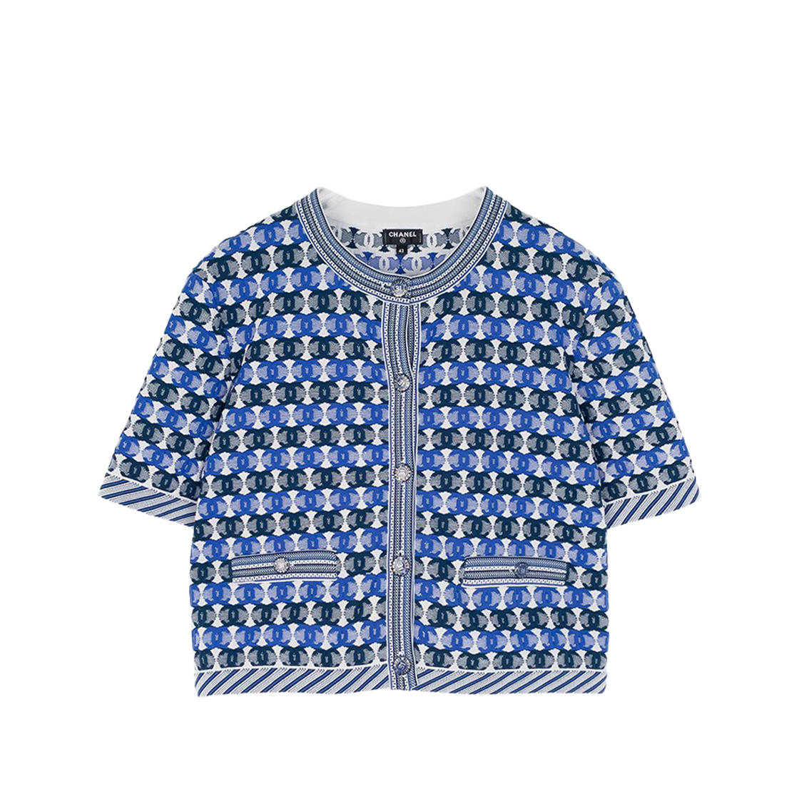 샤넬 멀티 CC패턴 숏슬리브 가디건 42 블루/화이트