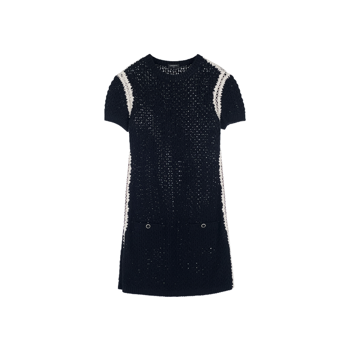 샤넬 22C 숏슬리브 니트 원피스 36 블랙/에크루