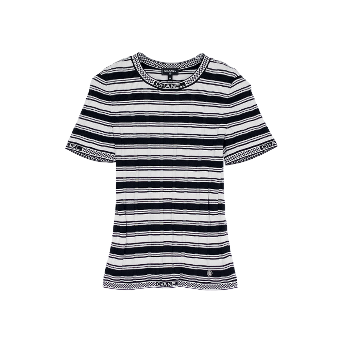샤넬 23C 스트라이프 숏 슬리브 니트탑 38 블랙/화이트