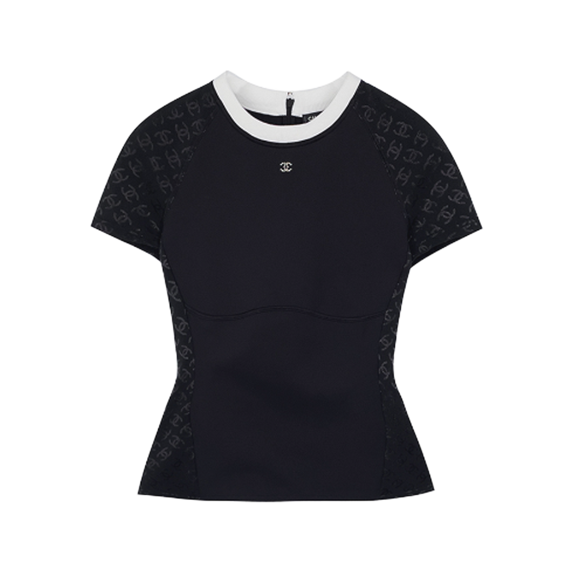 (W) 샤넬 탑 자수 립드 코튼 저지 화이트 블랙