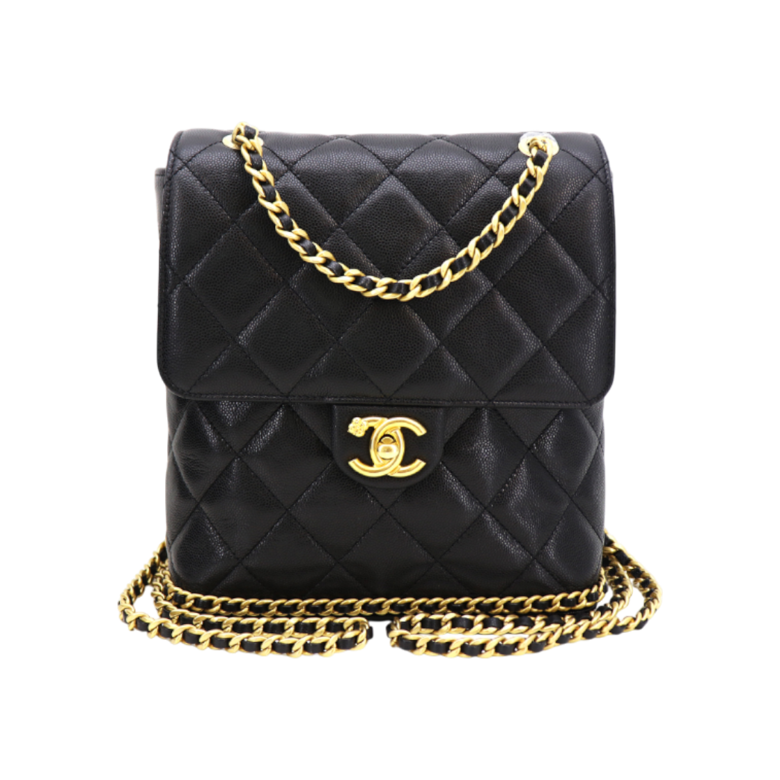 샤넬 AS5600 블랙 캐비어 25백 M 미디엄 금장체인 여성 백팩 aa57348