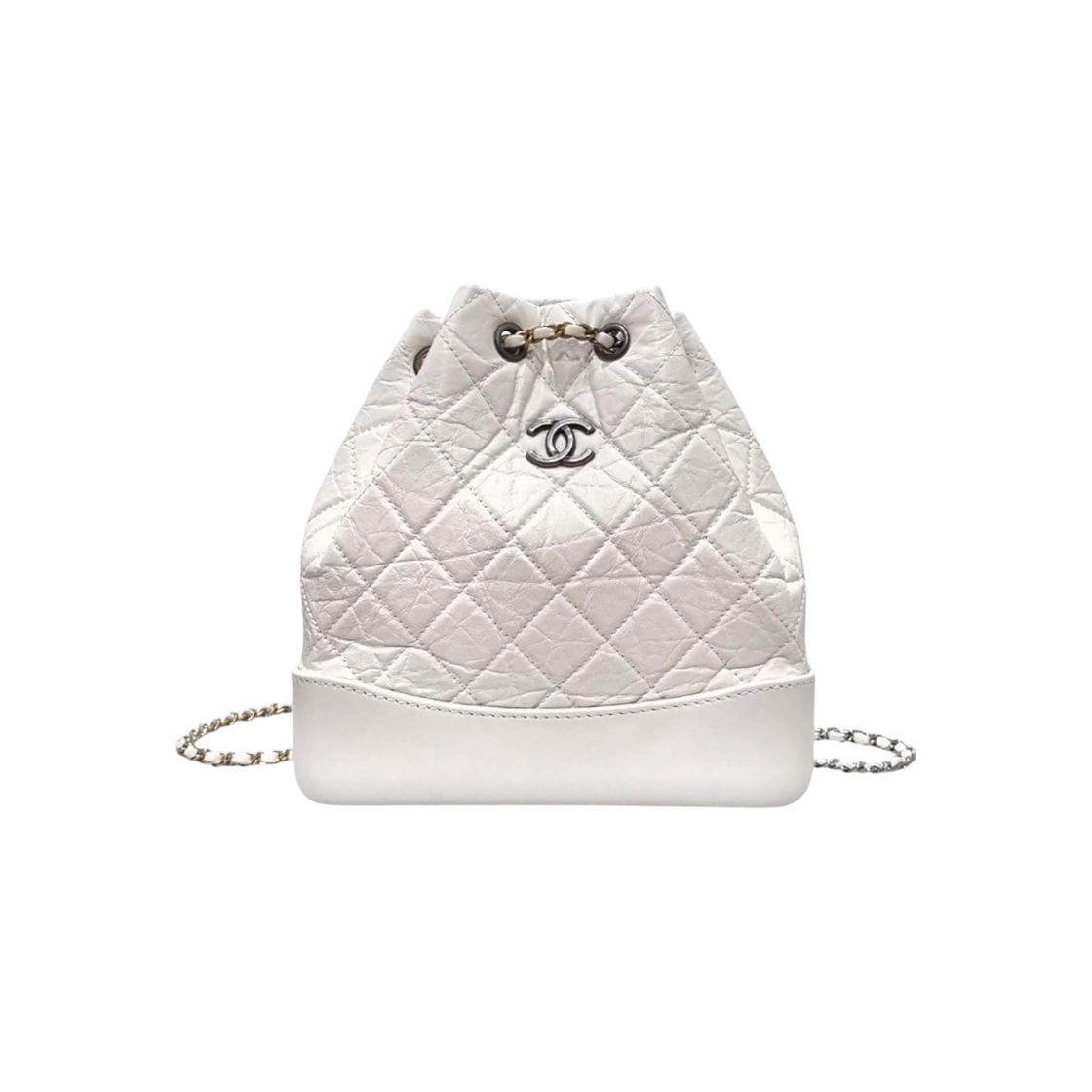 샤넬 스몰 가브리엘 백팩 빈티지 카프스킨 & 골드 실버 메탈 화이트 블랙