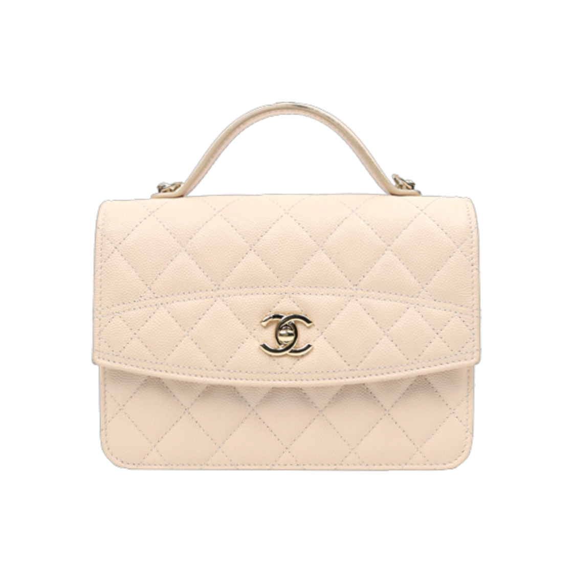 샤넬 베이지 캐비어스킨 탑 핸들 미니 백팩 C-A39317