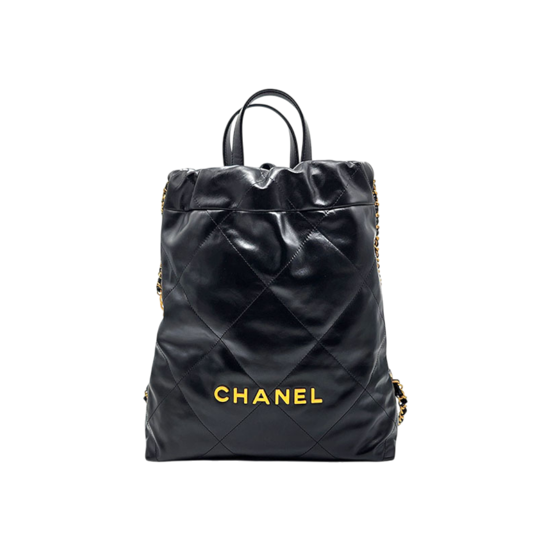 샤넬 22 미디움 백팩 샤이니 카프스킨 블랙 금장