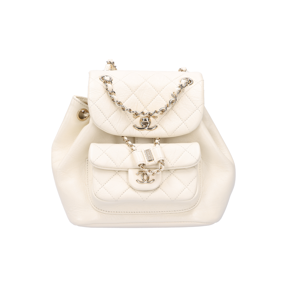 샤넬 화이트 듀마 샴페인 골드 스몰 백팩 내장칩