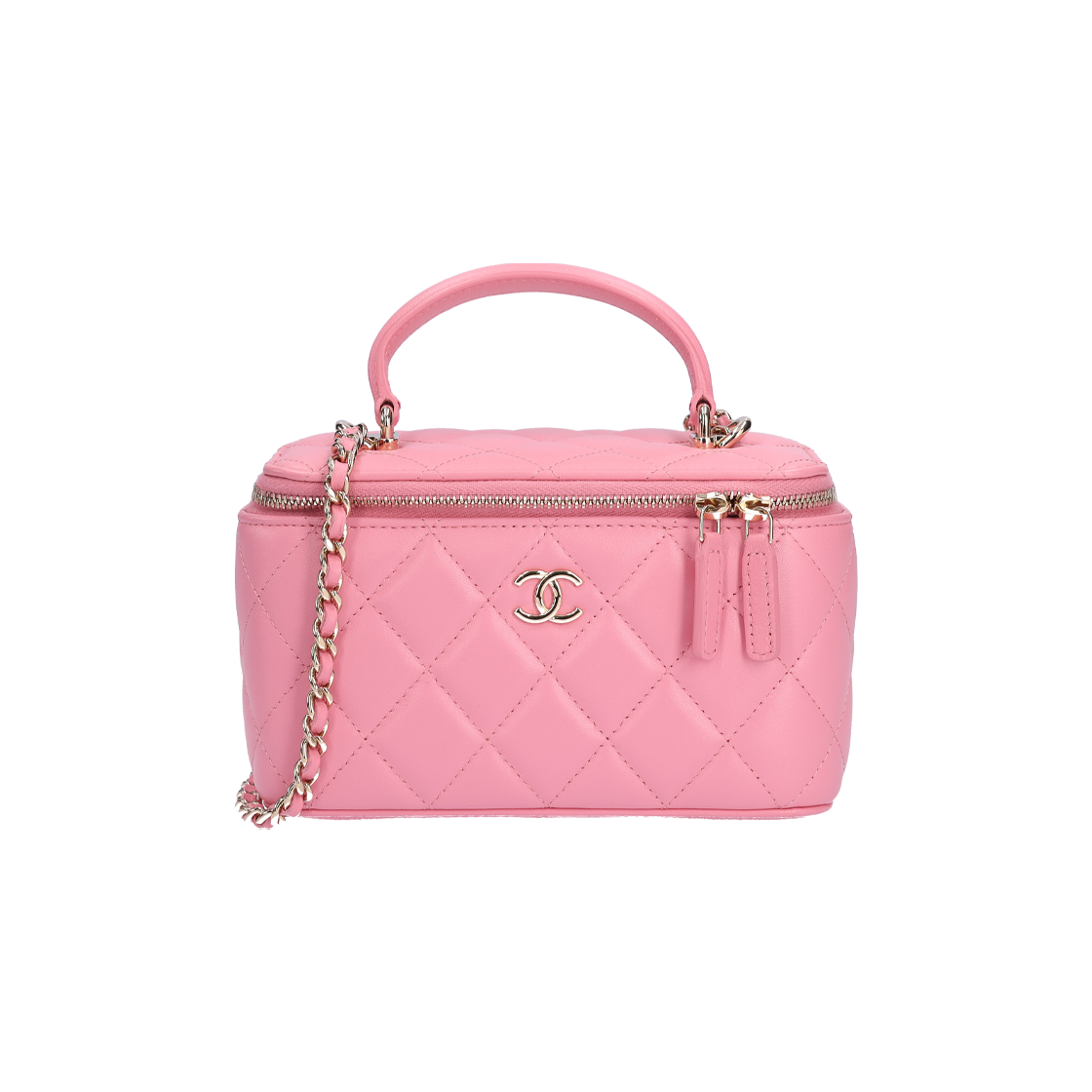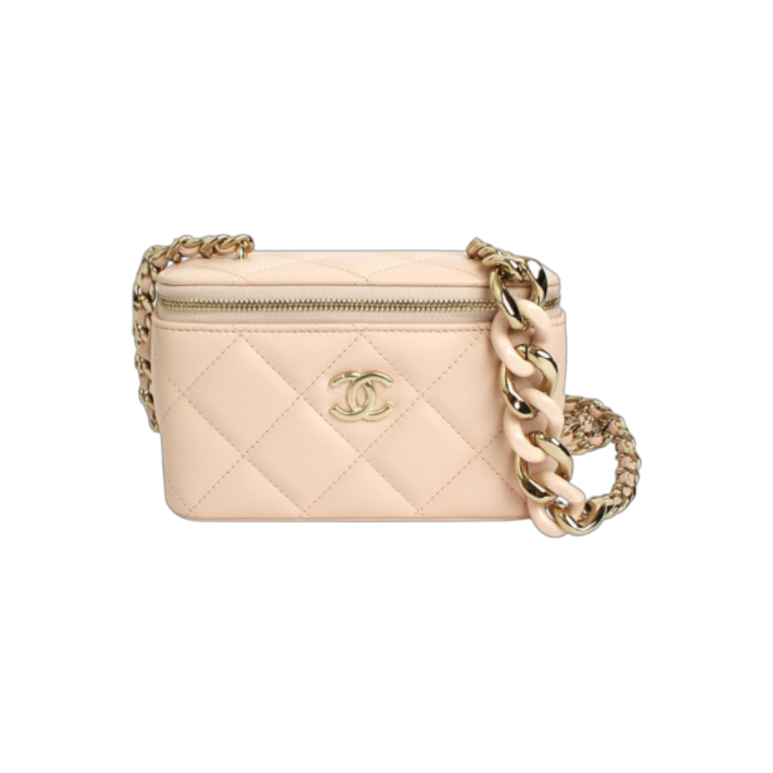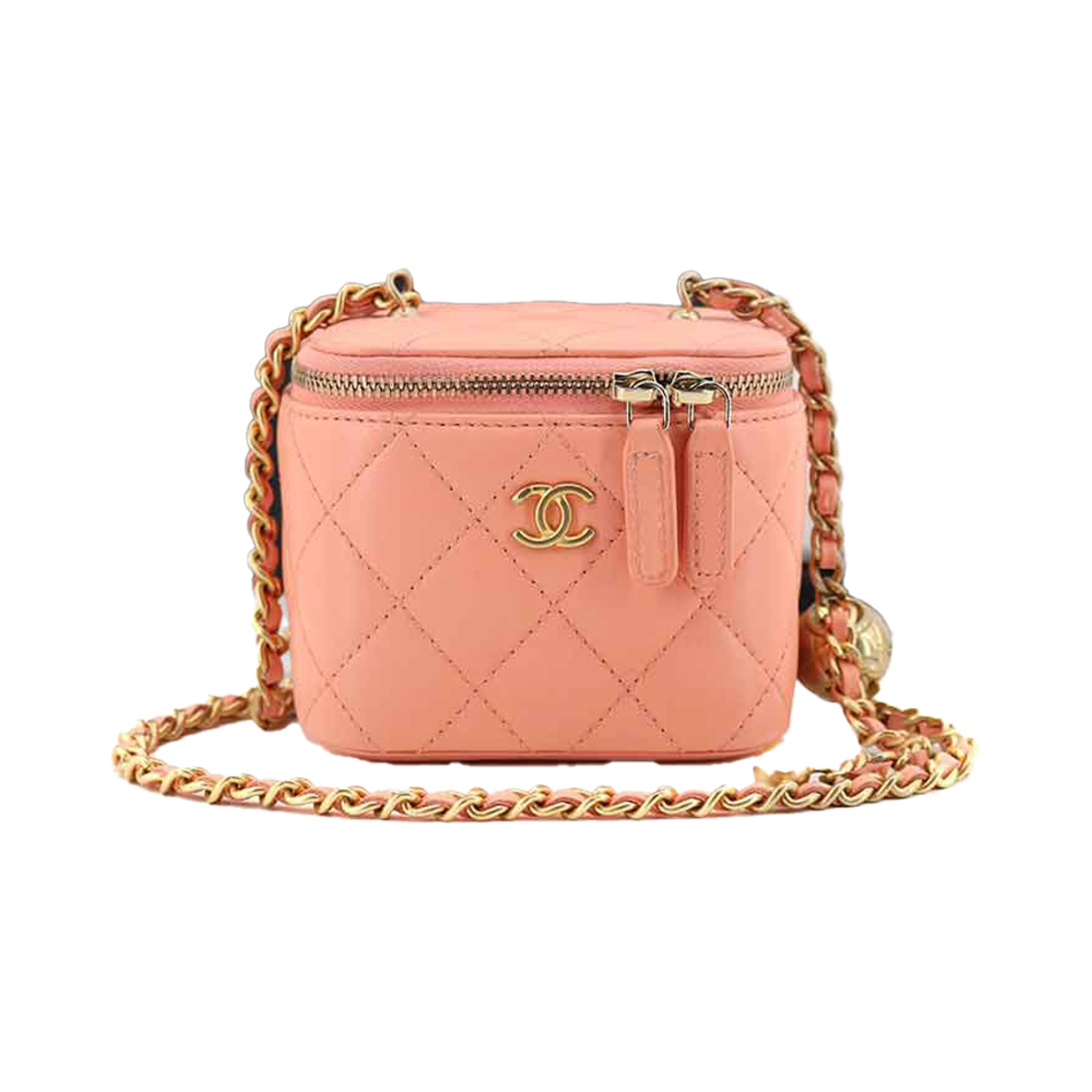 샤넬 AP2199 베니티 체인 코스메틱 금장 핑크 램스킨 케이스