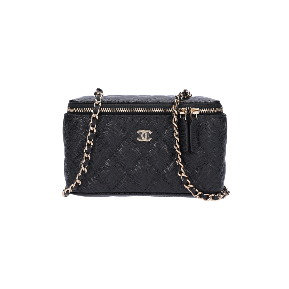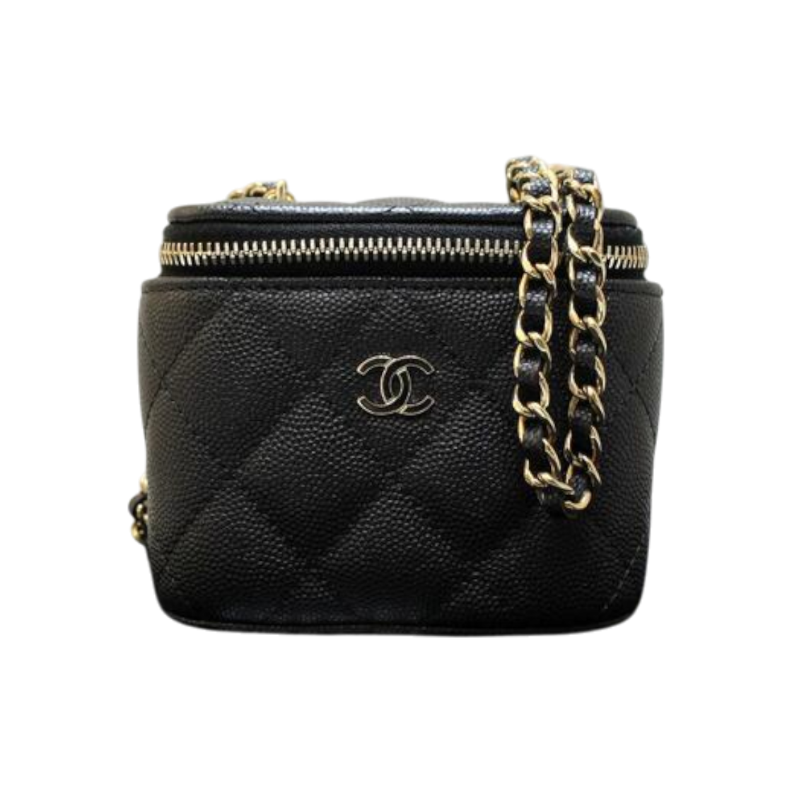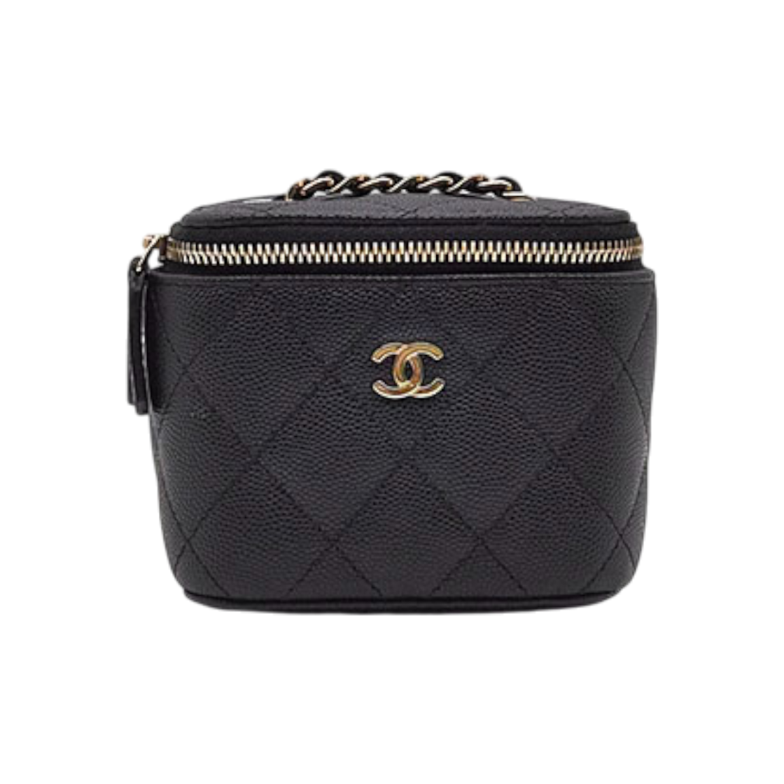 샤넬 AP1341 클래식 스몰 베니티 체인 코스메틱 케이스 그레인드 카프스킨 블랙 금장