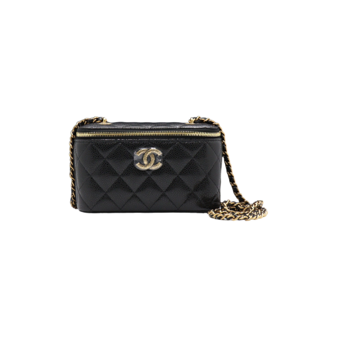 샤넬 AP1341 캐비어 베니티 코스메틱 금장 CC 체인 숄더백 aa51383