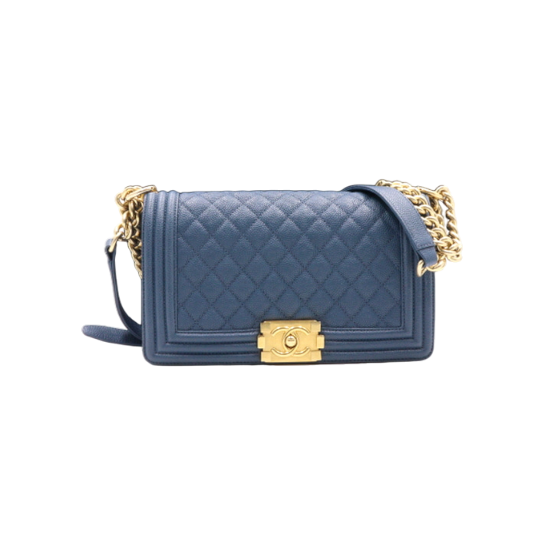 샤넬 A67086 보이샤넬 블루 캐비어 미듐 플랩 금장체인 숄더백 aa34491