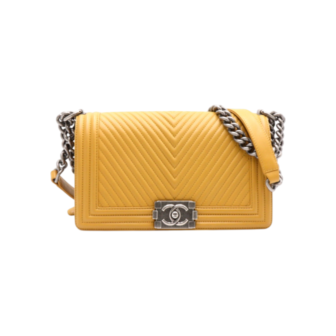 샤넬 A92493 시즌 한정 컬러 쉐브론 보이 샤넬 미듐 빈티지 은장 체인 숄더백 aa36752