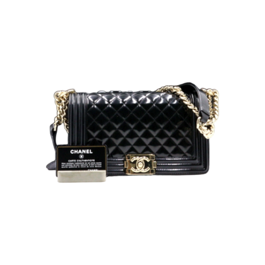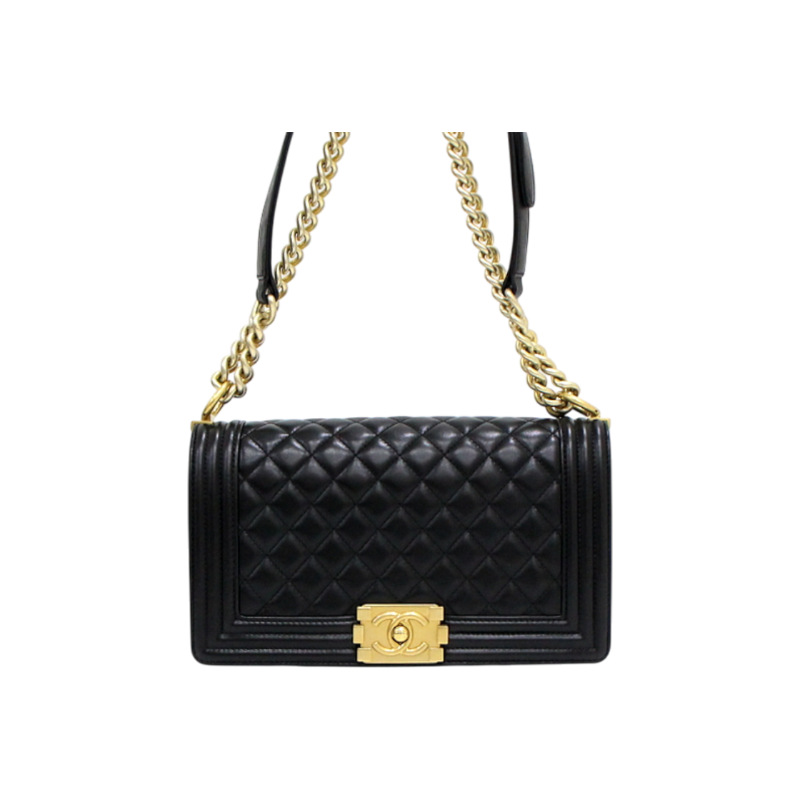 샤넬 A67086 보이샤넬 미듐 카프스킨 블랙 유광 샴페인골드 금장체인 숄더백 aa31568