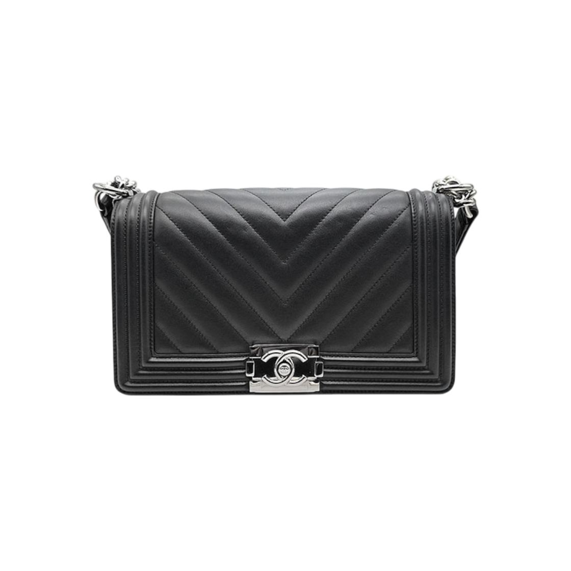 샤넬 A67086 보이샤넬 카프 쉐브론 미듐 플랩 은장체인 숄더백 aa18139