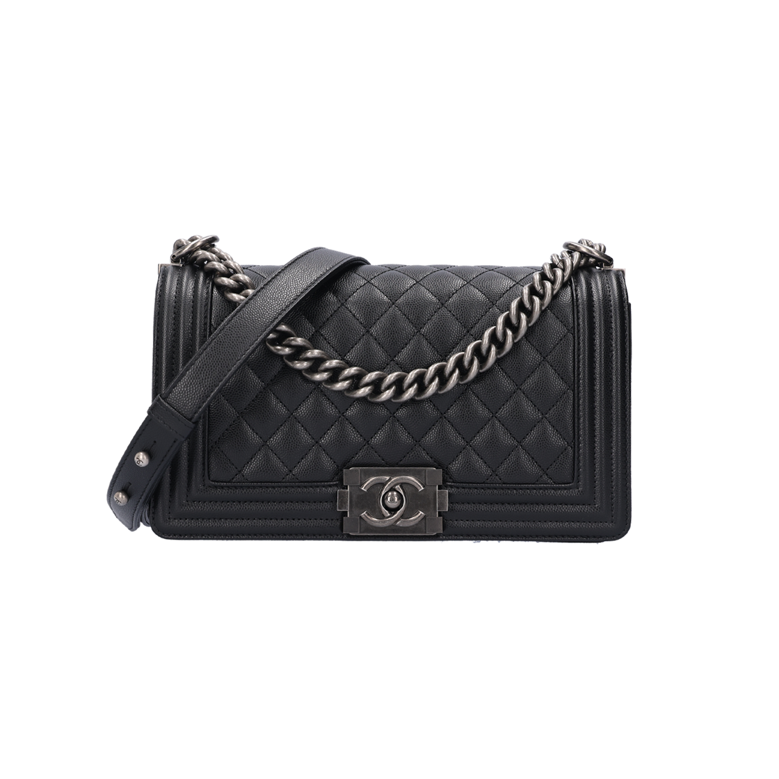 샤넬 보이 샤넬 미디움 플랩백 그레인드 카프스킨 & 루테늄 메탈 블랙