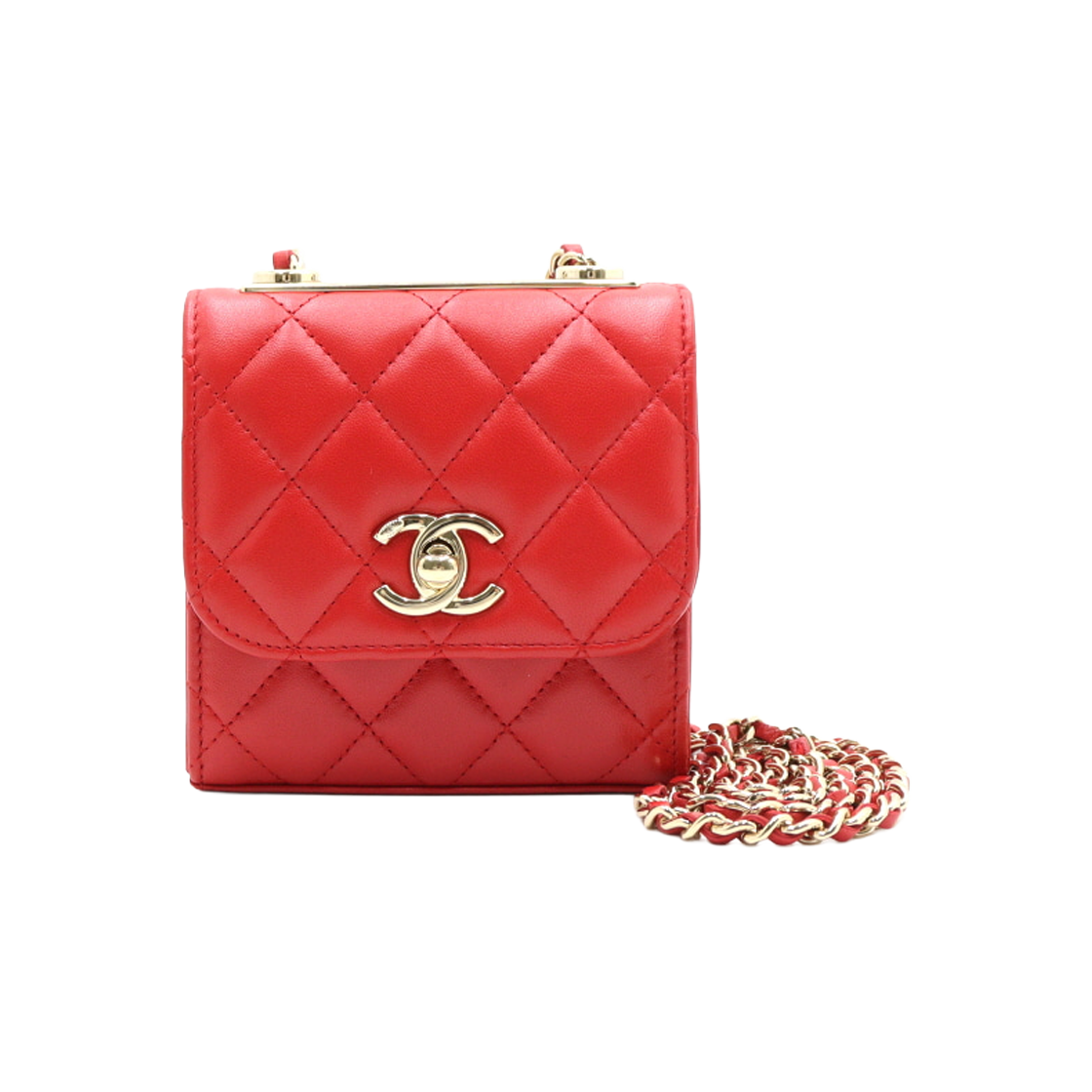샤넬 A81633 레드 트렌디 CC 램스킨 미니 금장 체인 숄더백 겸 크로스백 aa42439
