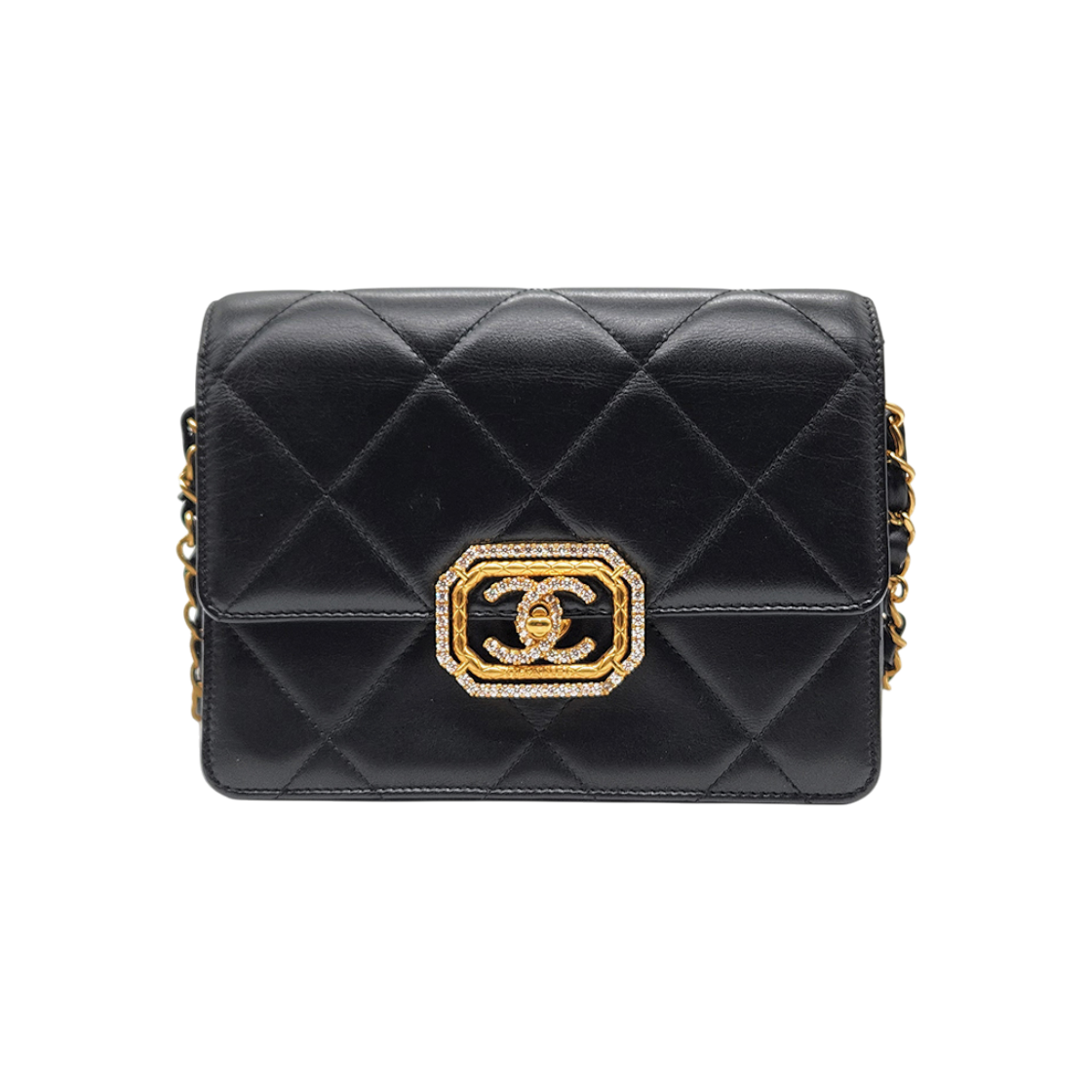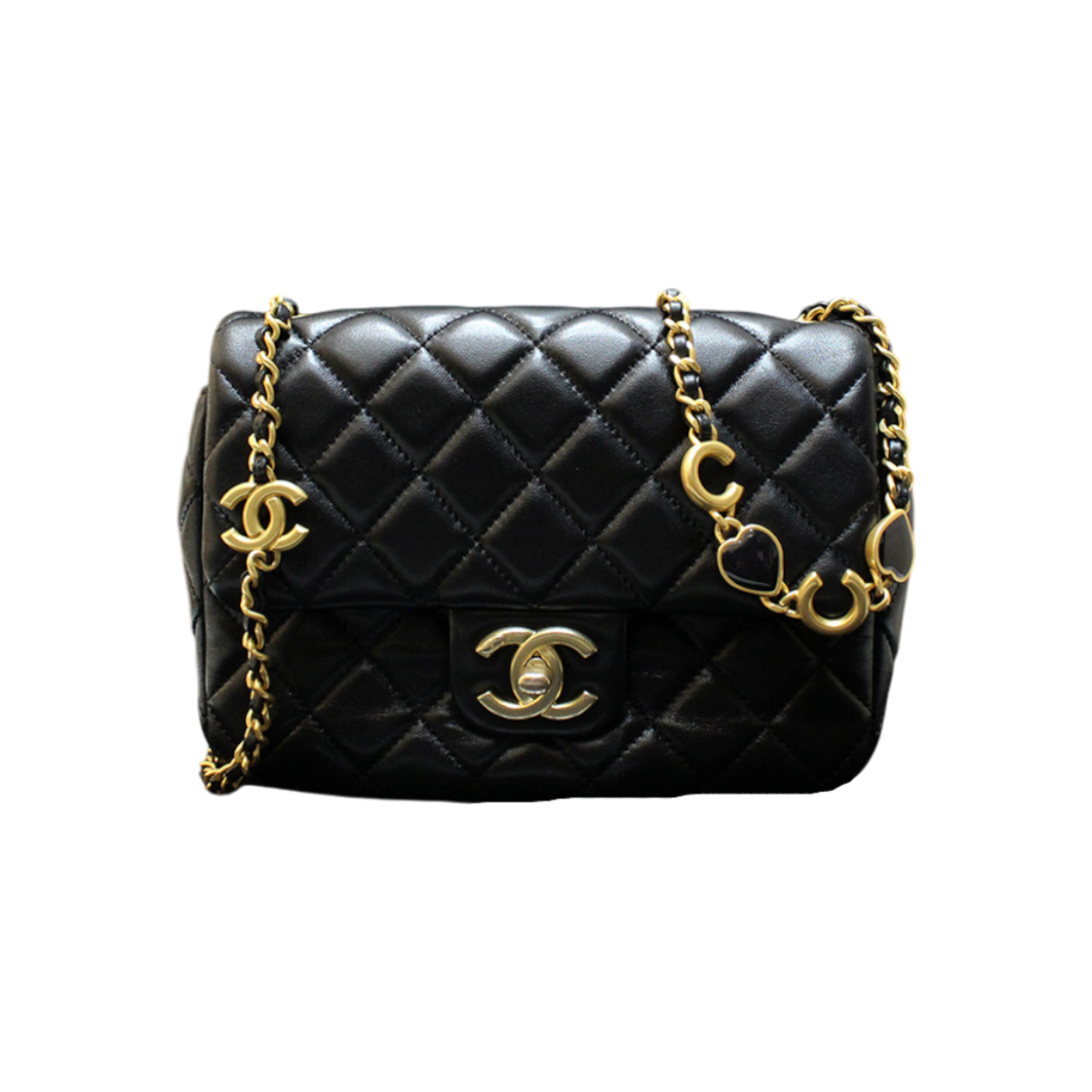 샤넬 AS3751 23시즌 크루즈라인 블랙 램스킨 CC 에나멜장식 금장체인 미니 플랩백 aa25925